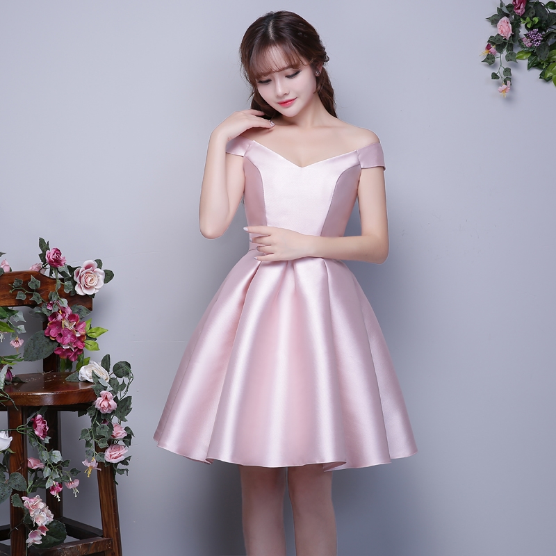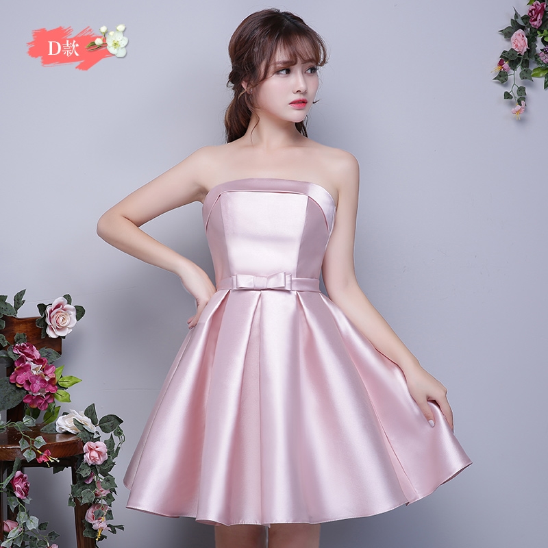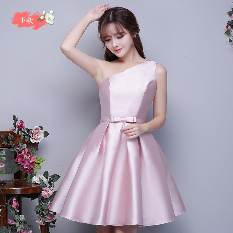 秋玉粉伴娘团礼服缎面秋季短款伴娘服姐妹裙小礼服伴娘裙