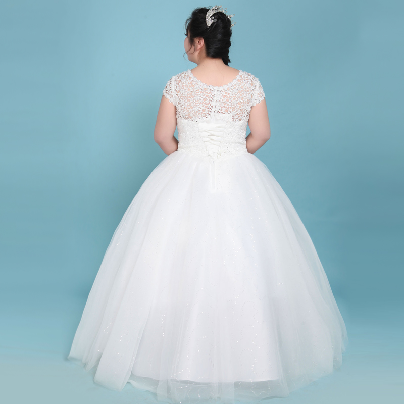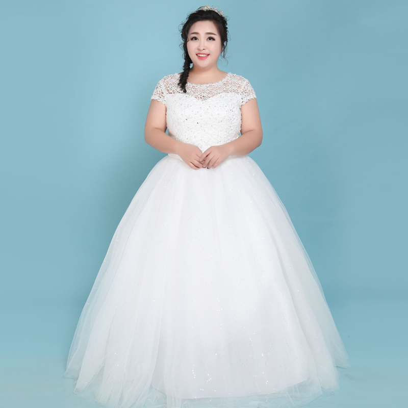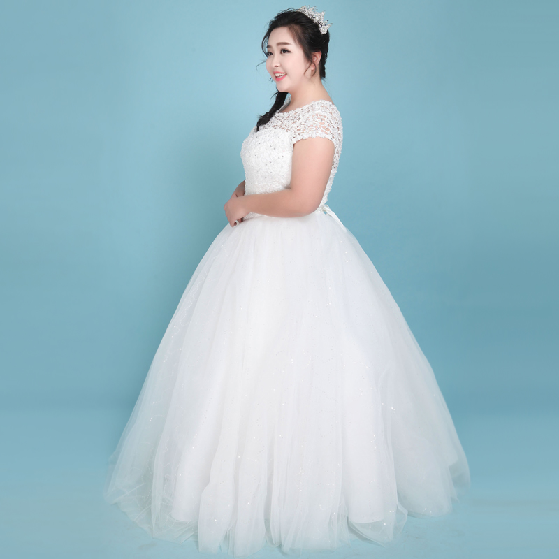 • 韩式秋冬新款加大码婚纱礼服胖mm显瘦胖人新娘结婚一字肩齐地定