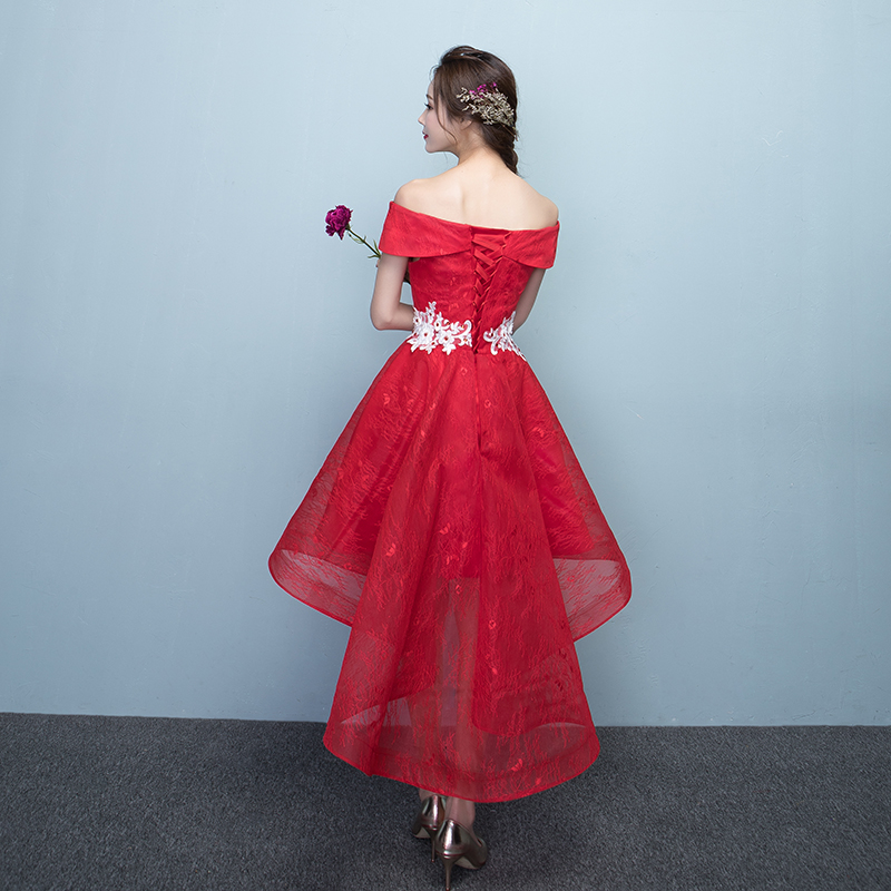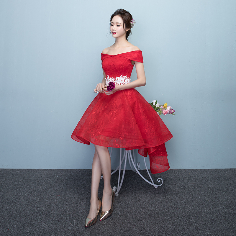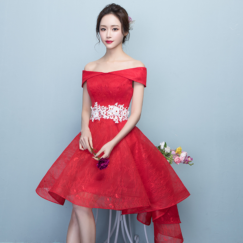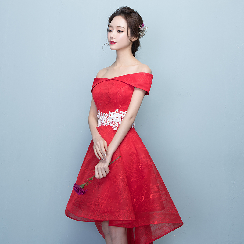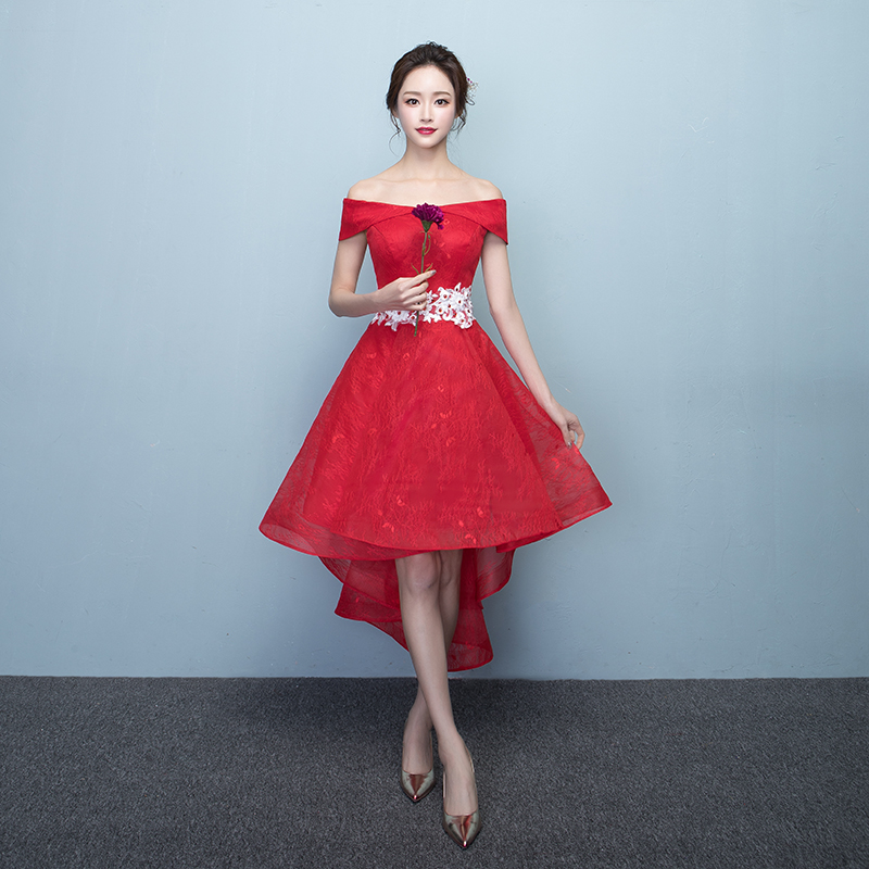 • 2017敬酒服新娘春季一字肩结婚新款短款订婚礼服女蓬蓬裙前短