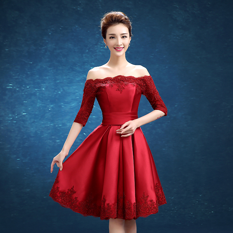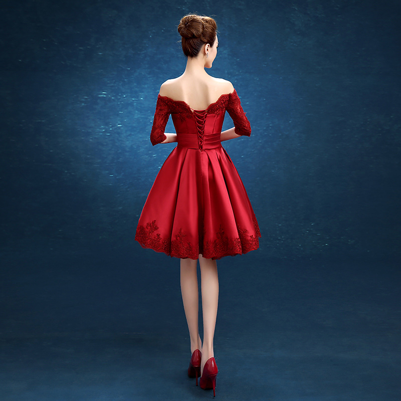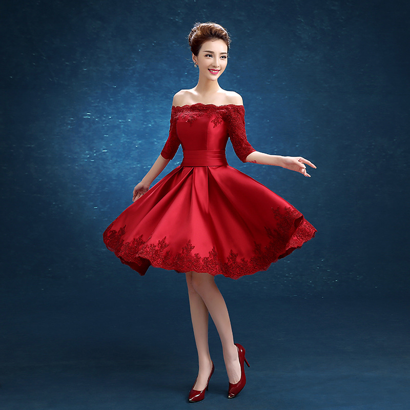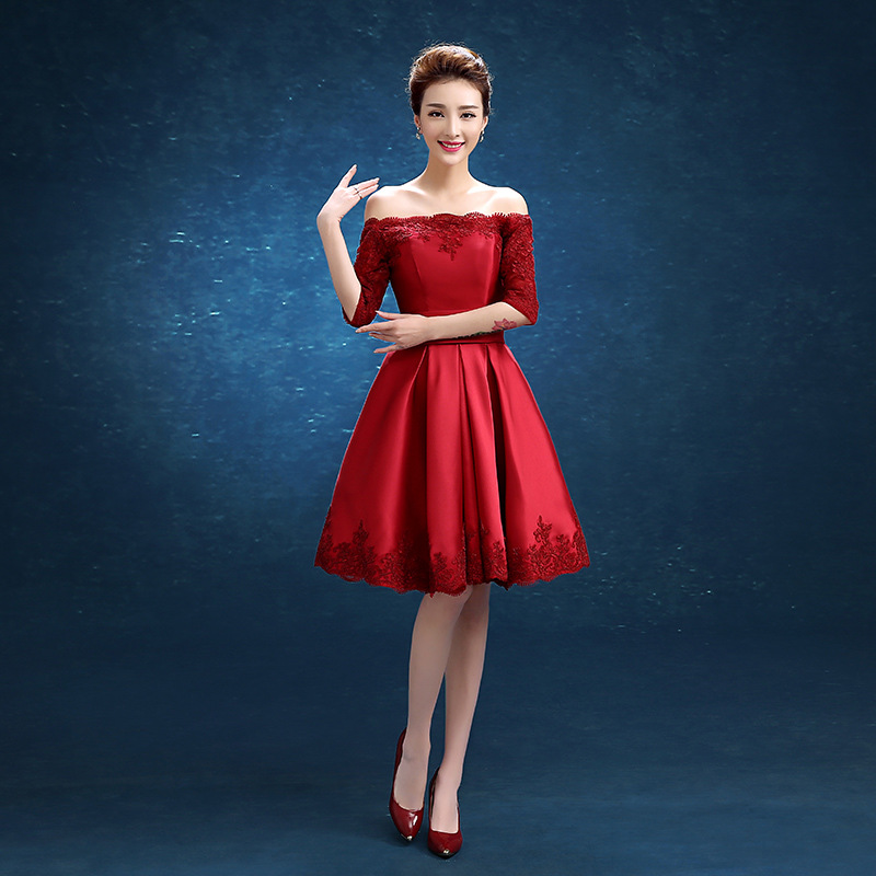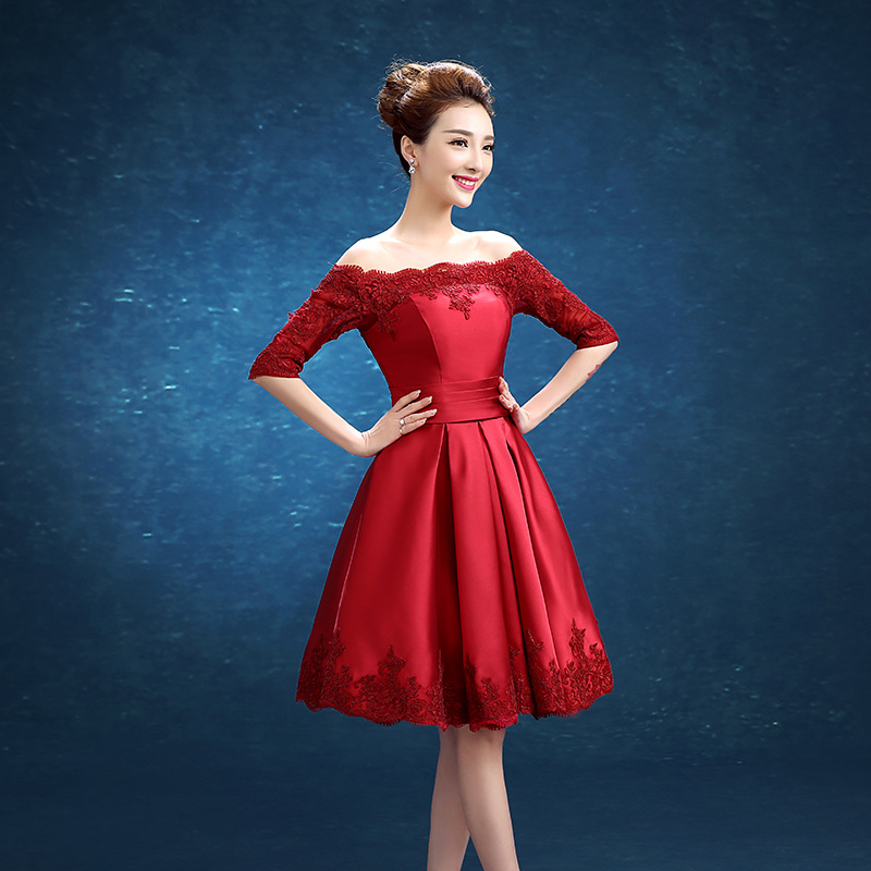 • 红色敬酒服新娘2017新款结婚订婚礼服宴会晚礼服长款伴459