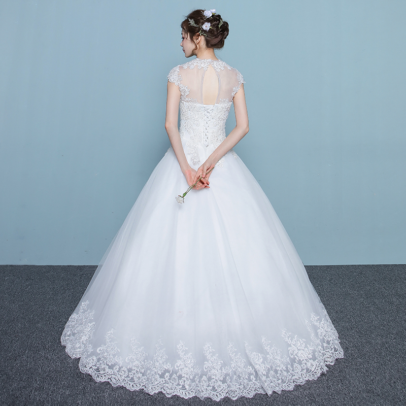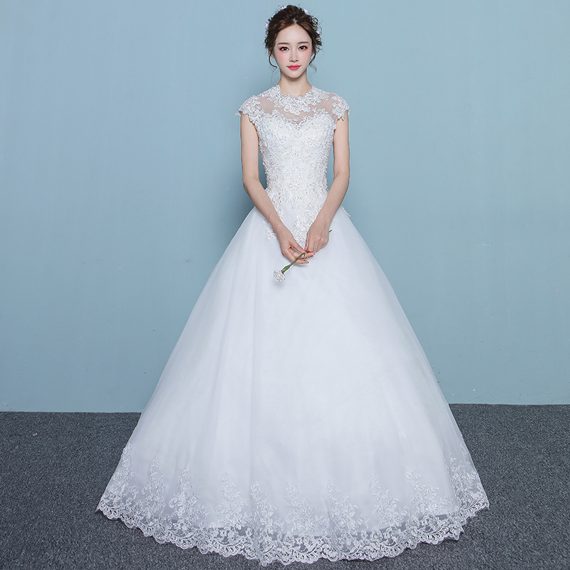 新中式婚纱礼服2017新款新娘修身显瘦大码一字肩圆领齐地婚纱