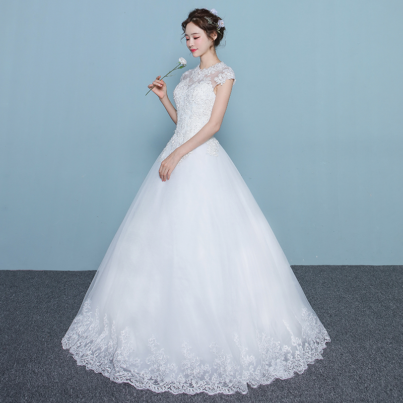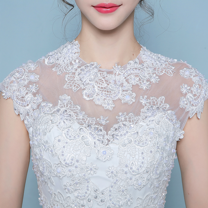 • 新中式婚纱礼服2017新款新娘修身显瘦大码一字肩圆领齐地婚纱