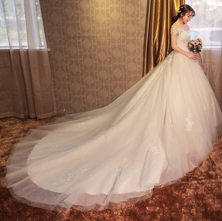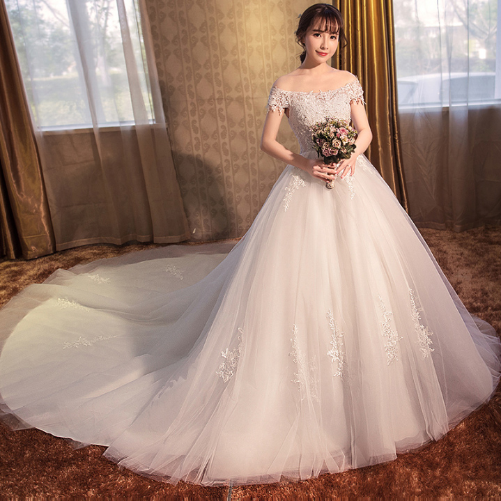 新品特惠!2017新款春季韩式齐地新娘结婚孕妇高腰长拖尾婚纱