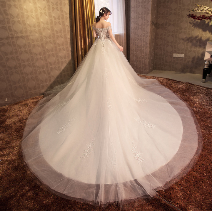 • 新品特惠!2017新款春季韩式齐地新娘结婚孕妇高腰长拖尾婚纱