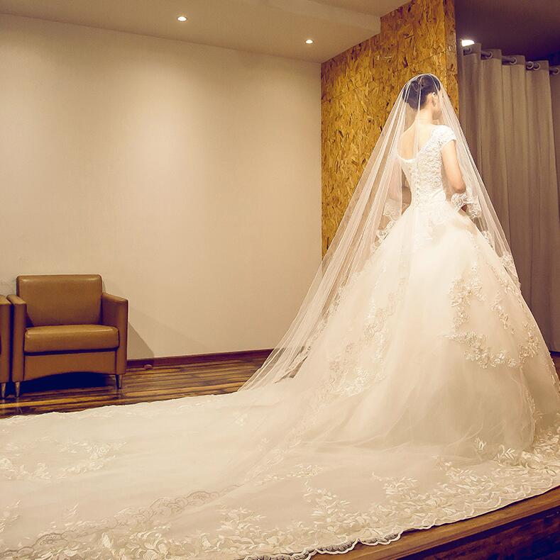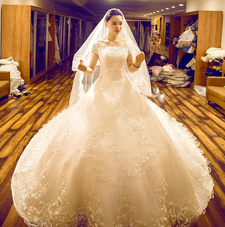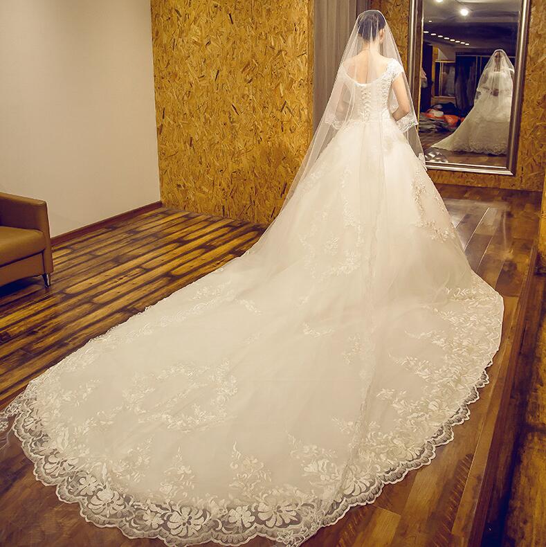 婚纱礼服2017新款新娘长拖尾一字肩奢华齐地公主修身简约显瘦