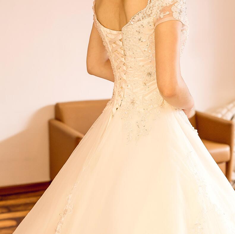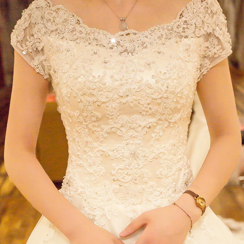 • 婚纱礼服2017新款新娘长拖尾一字肩奢华齐地公主修身简约显瘦