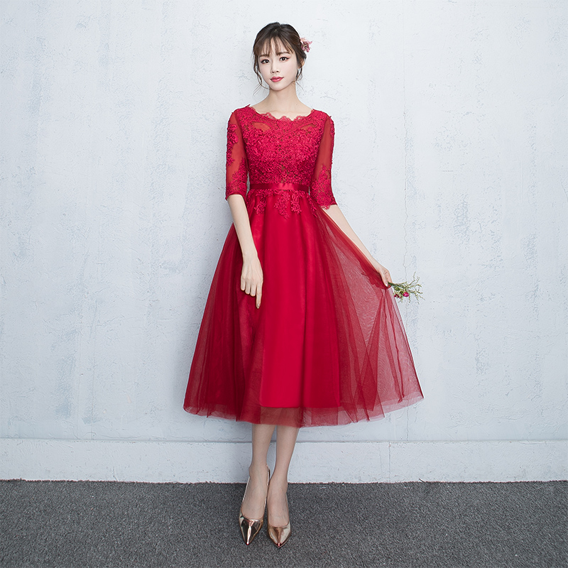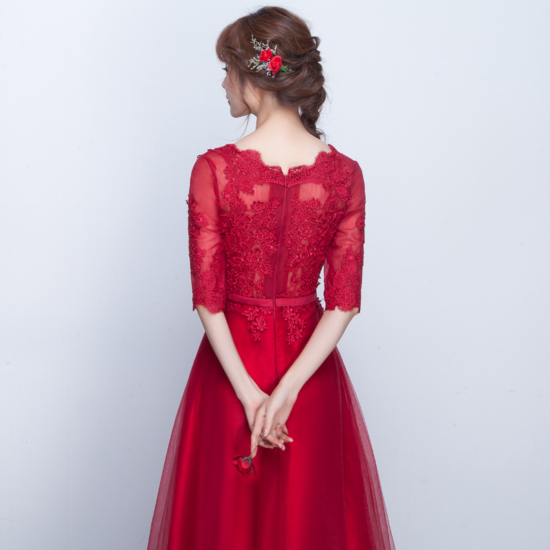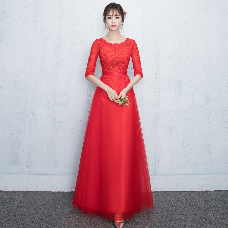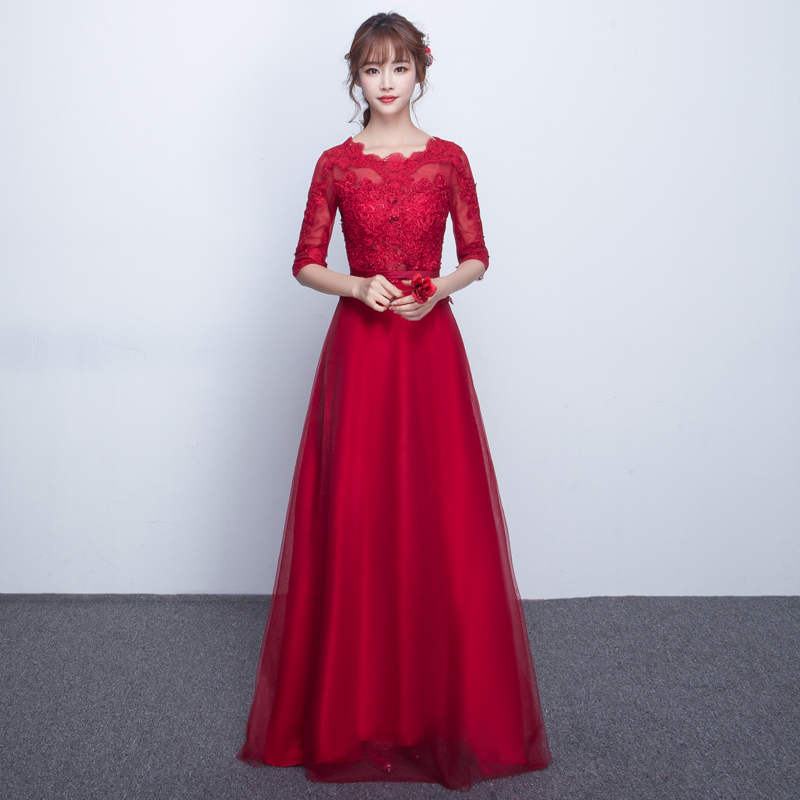 • 美美美!新娘敬酒服中袖2017新款春季晚礼服韩式修身长款红色