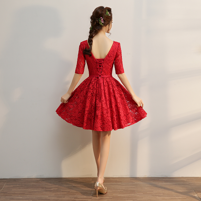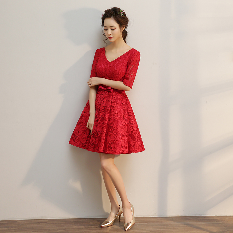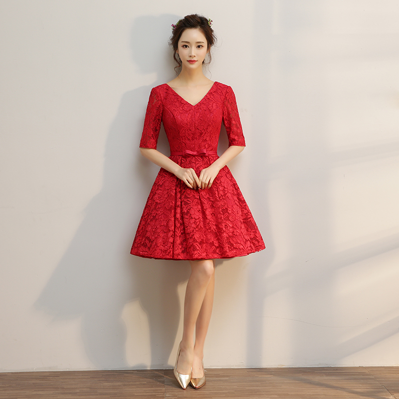 • 敬酒回门!新款新娘结婚敬酒短款时尚韩式修身显瘦红色中袖回门服