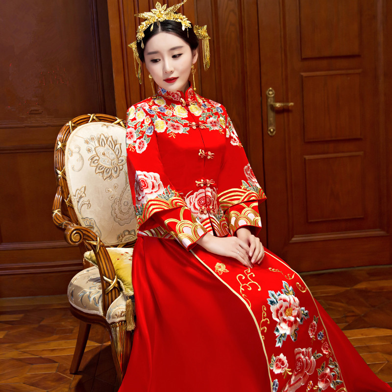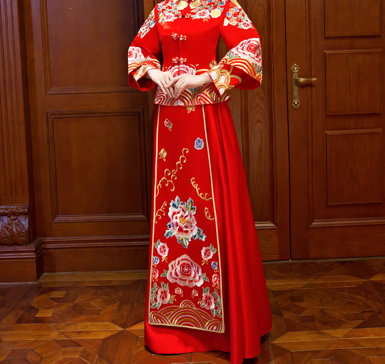 • 新款秀禾服新娘中式嫁衣龙凤褂结婚红色旗袍长袖秀和敬酒礼服