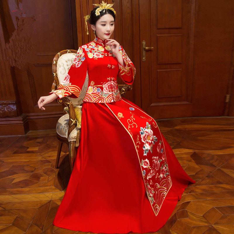 新款秀禾服新娘中式嫁衣龙凤褂结婚红色旗袍长袖秀和敬酒礼服