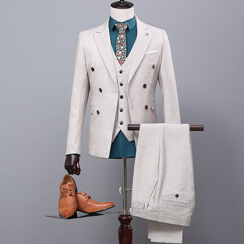 • 伴郎新郎结婚礼服秋季西服套装三件套男士休闲职业西装修身74