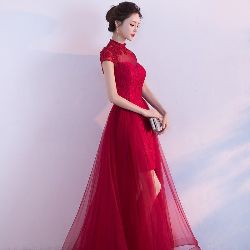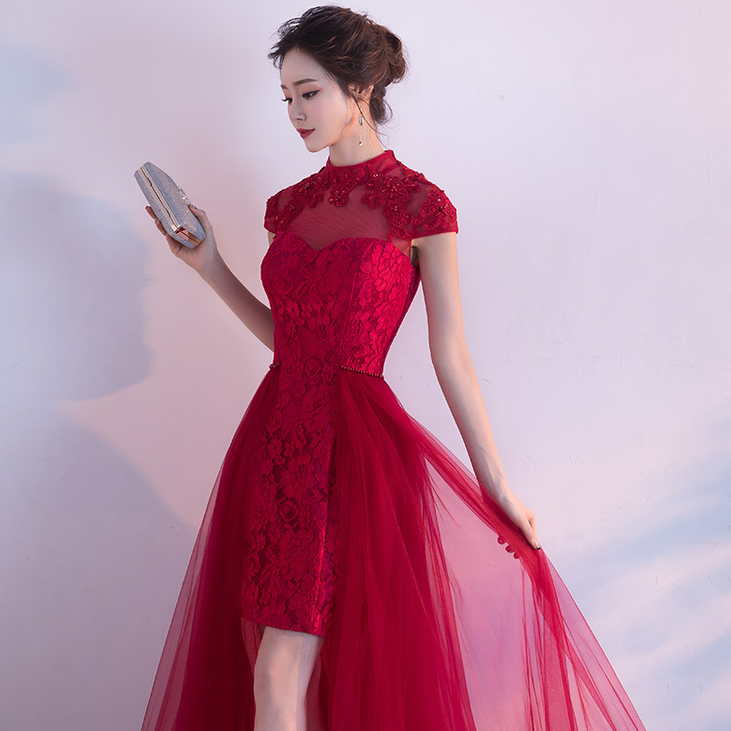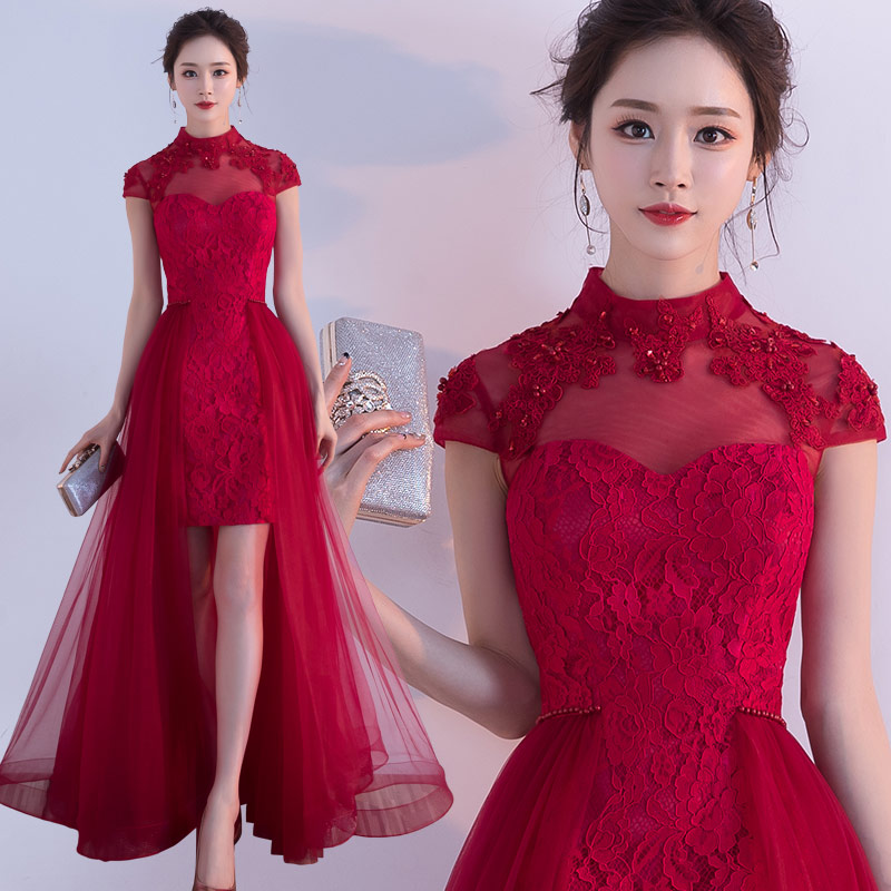 • 敬酒服新娘春季2017新款结婚回门红色小礼服短款连衣裙订婚时