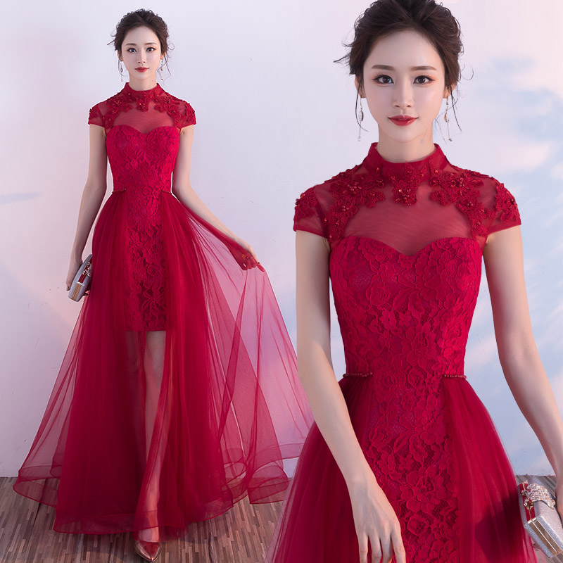 敬酒服新娘春季2017新款结婚回门红色小礼服短款连衣裙订婚时
