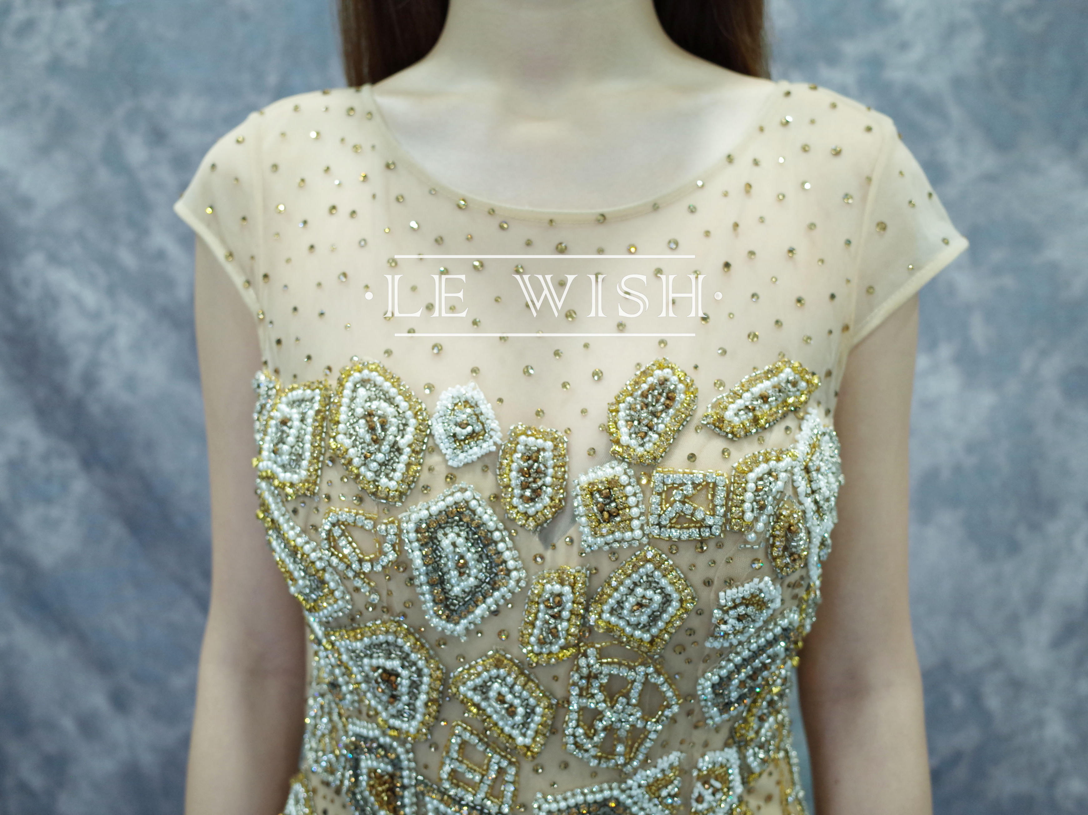 • 【LE WISH】闪耀珠片鱼尾露背拖尾婚纱礼服