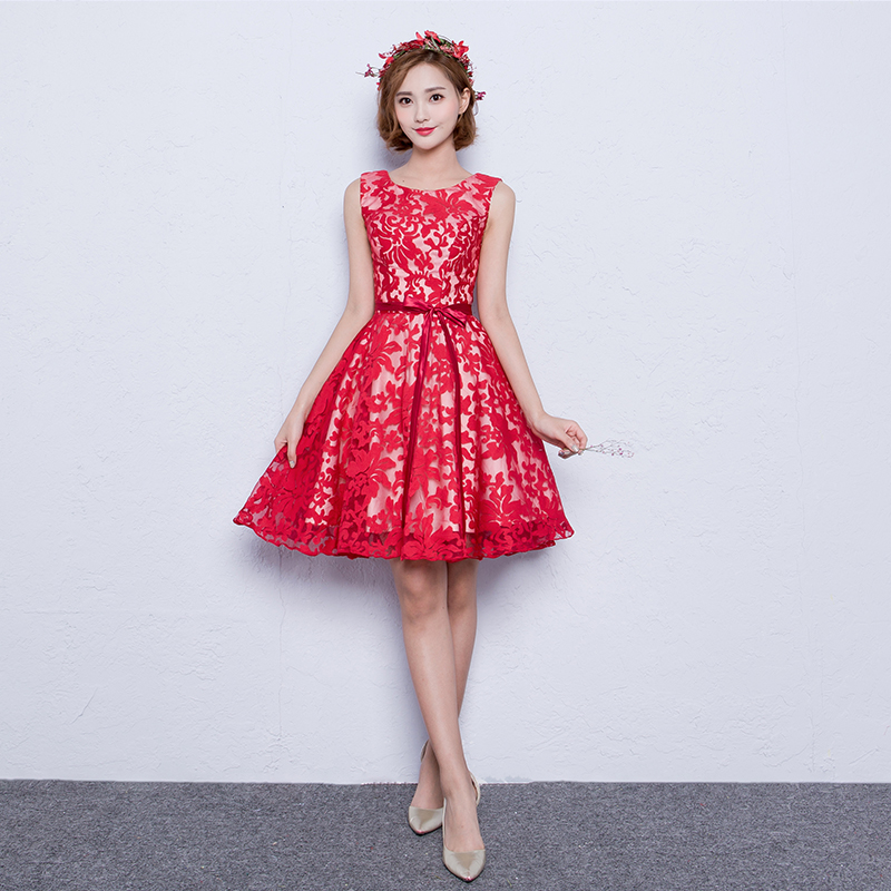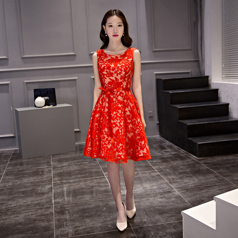 • 2017夏季短袖敬酒服新娘旗袍短款红色结婚回门礼服裙女修身