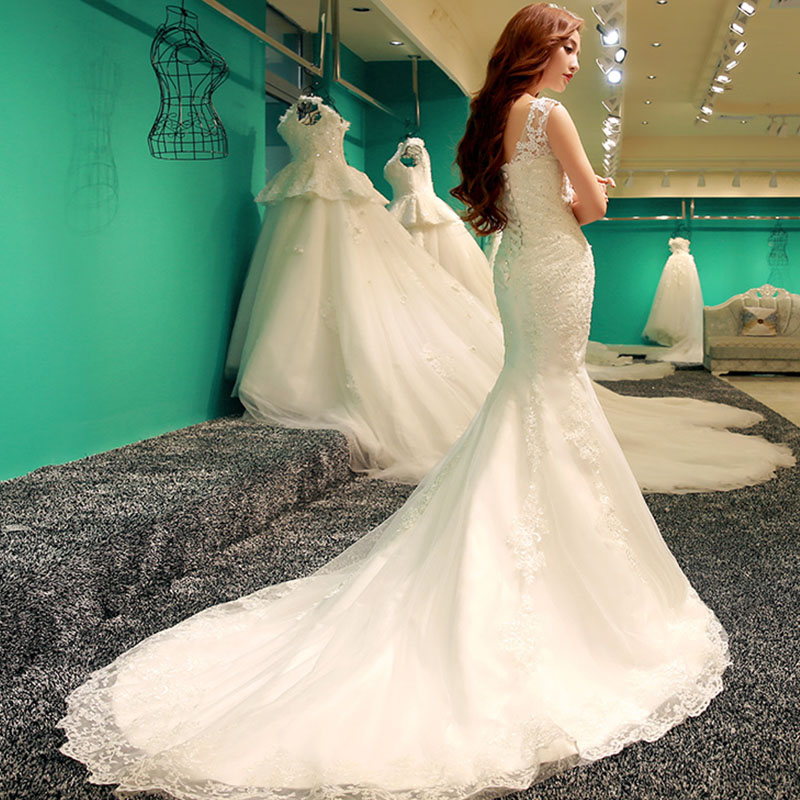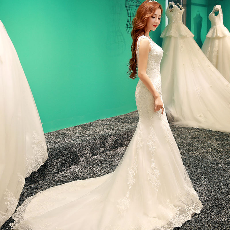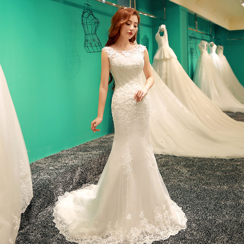 婚纱礼服新娘2017新款春夏韩式一字肩收腰鱼尾小拖尾修134