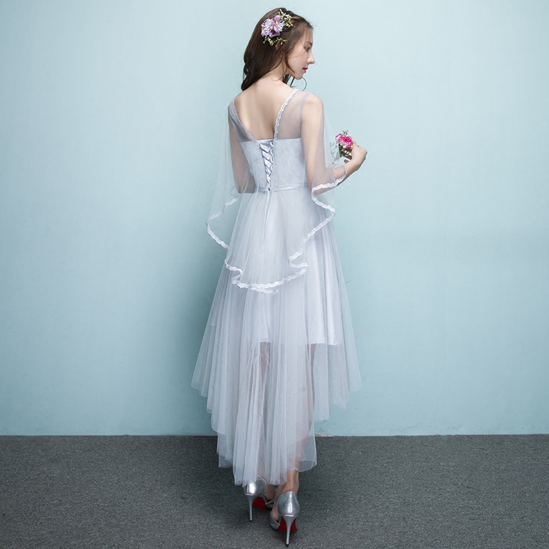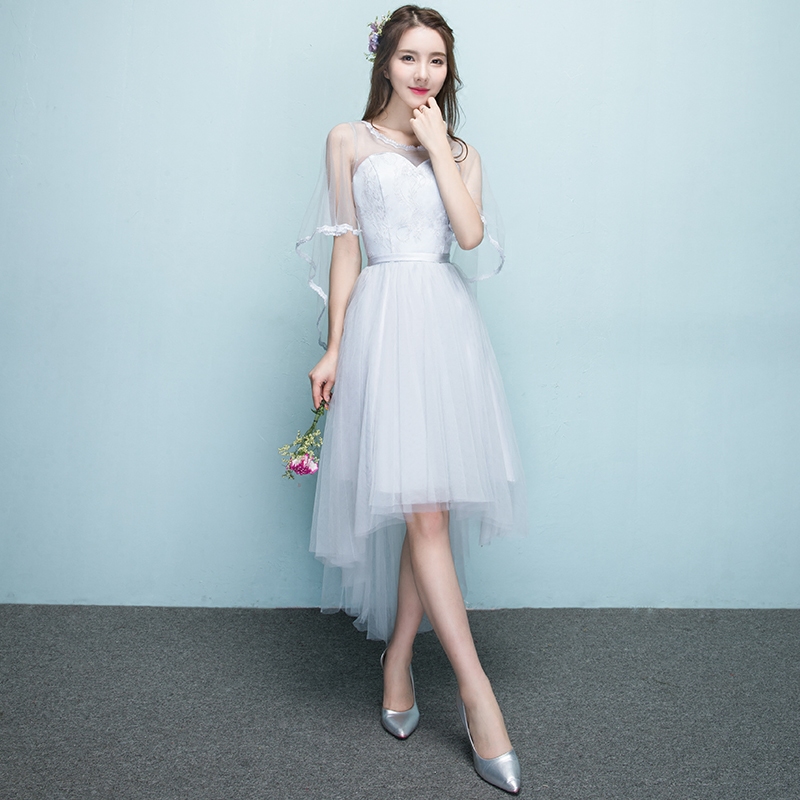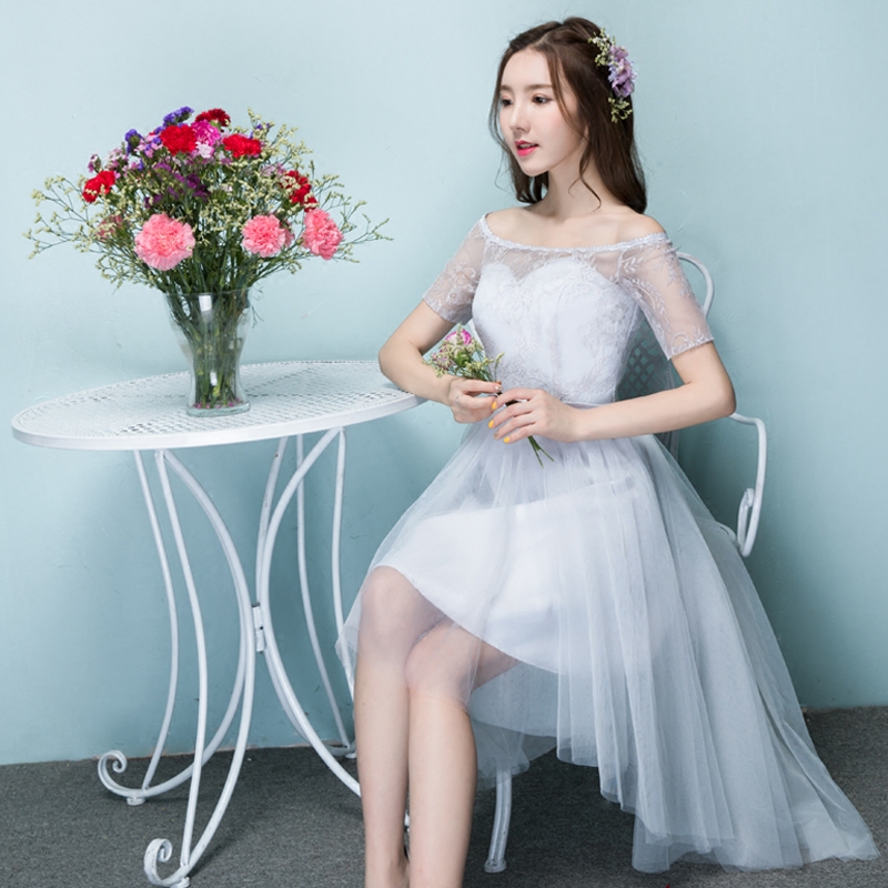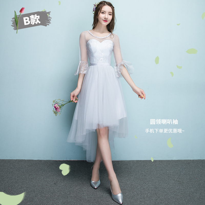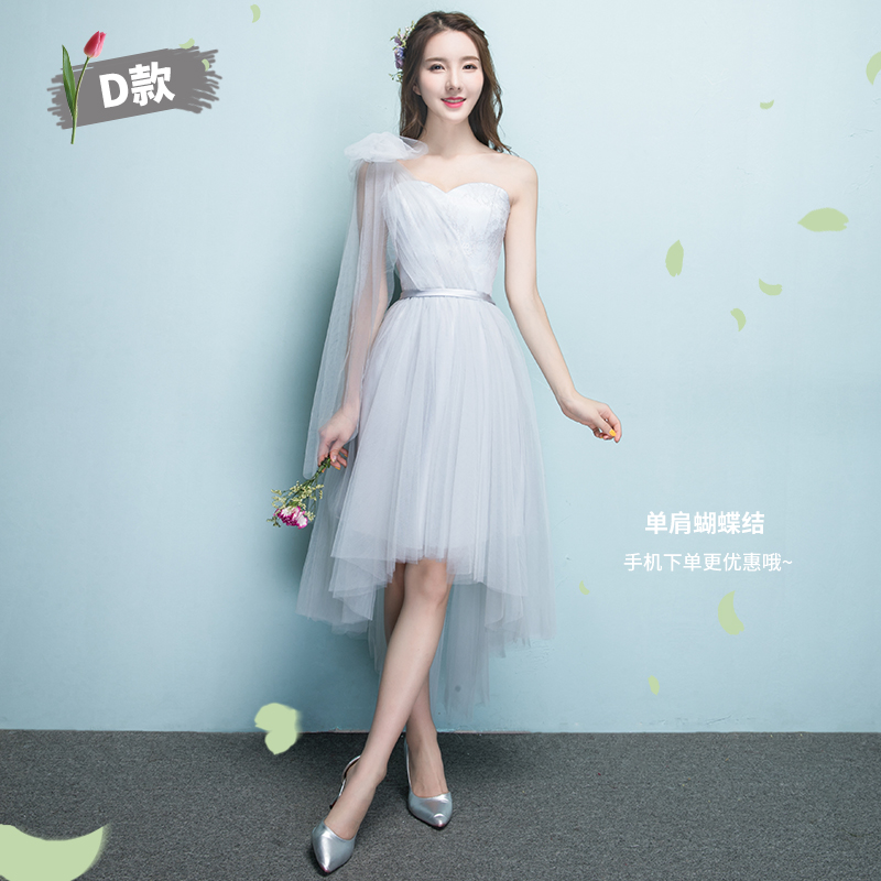 伴娘服前短后长2017新款夏季灰色短款伴娘团姐妹裙显瘦毕业晚