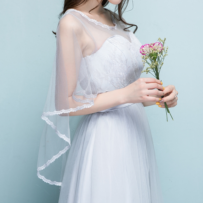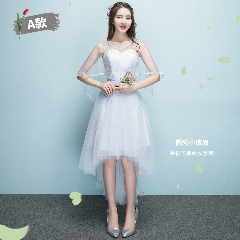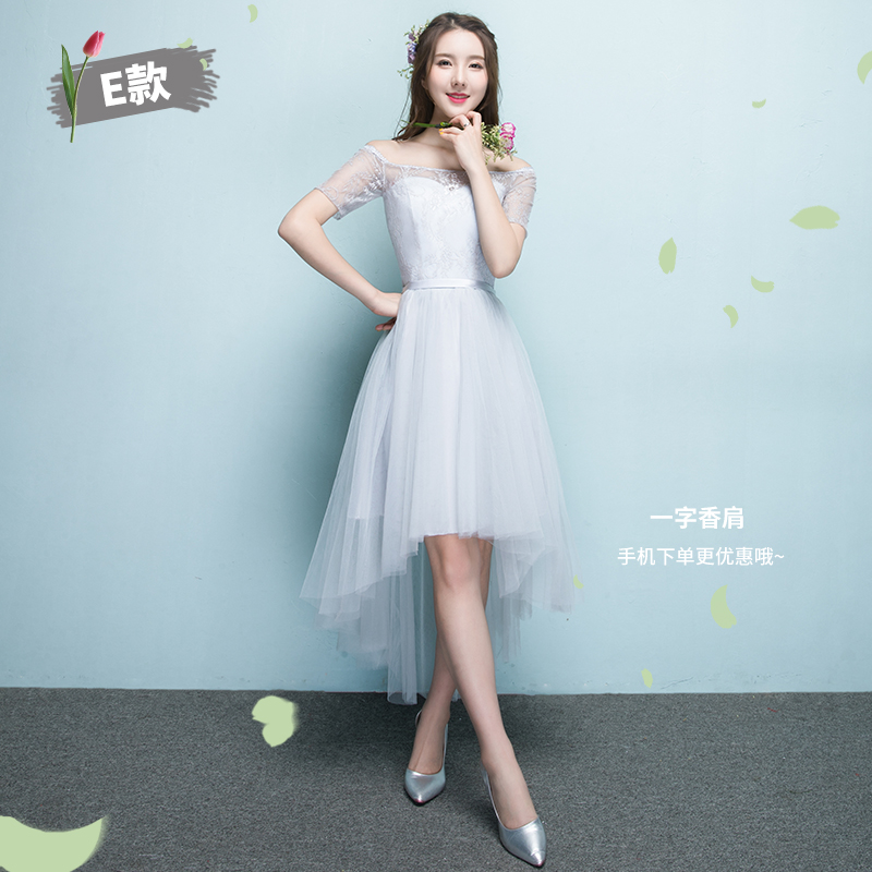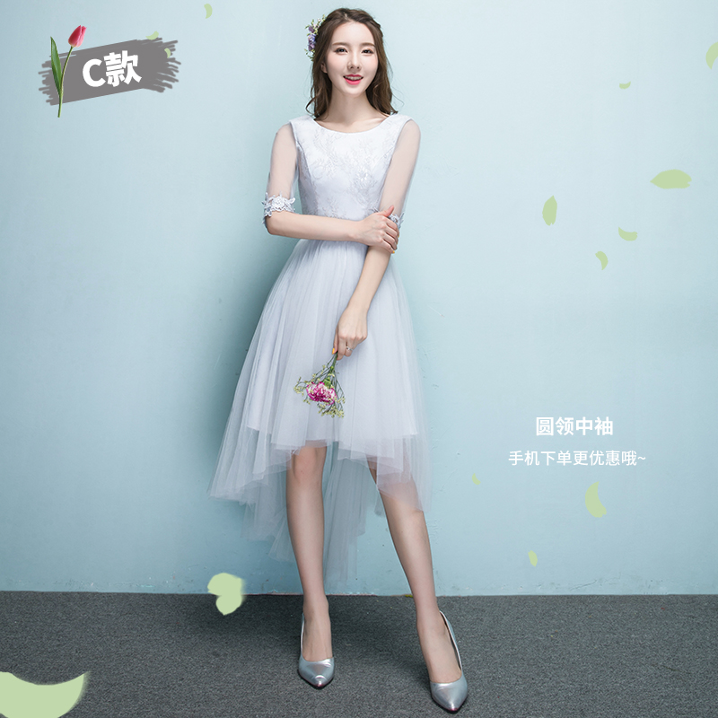 • 伴娘服前短后长2017新款夏季灰色短款伴娘团姐妹裙显瘦毕业晚