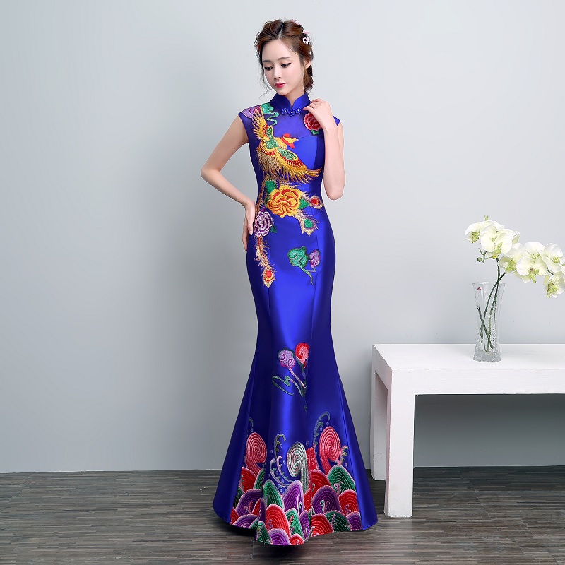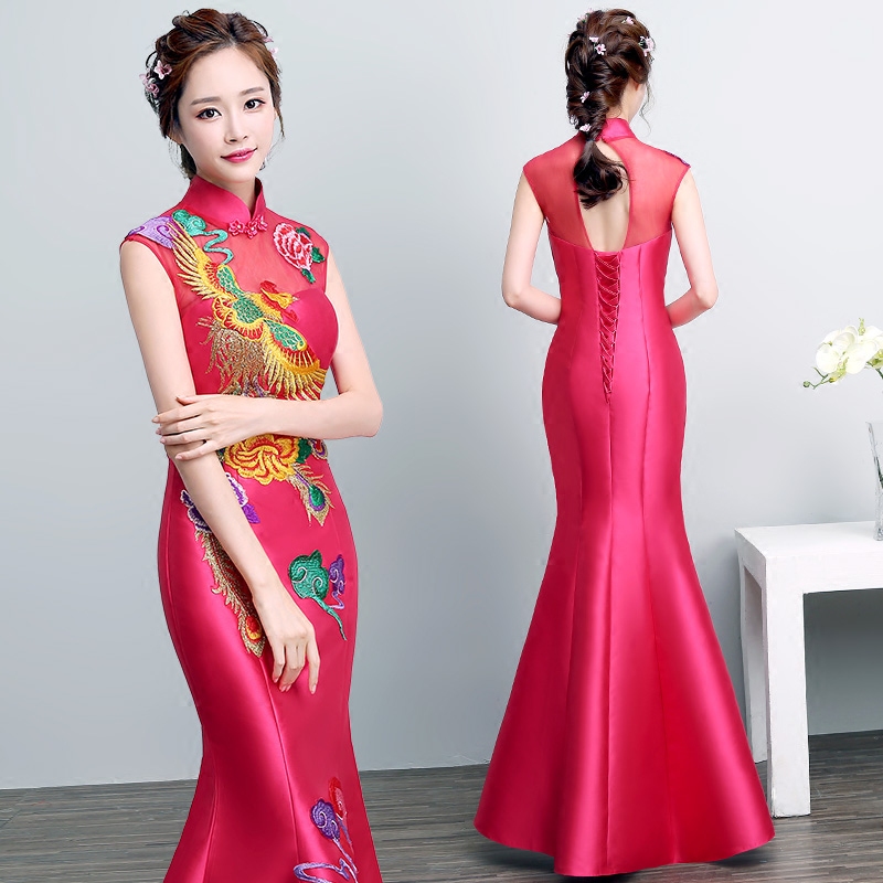 • 新娘中式刺绣鱼尾敬酒服长款修身结婚改良旗袍宴会晚礼服2017