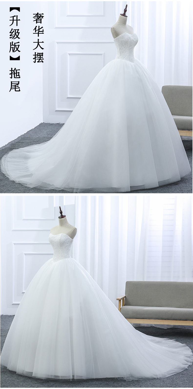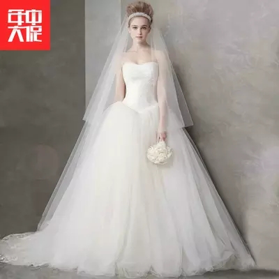 • 婚纱礼服2017新款新娘结婚韩版一字肩拖尾修身抹胸显瘦齐地简