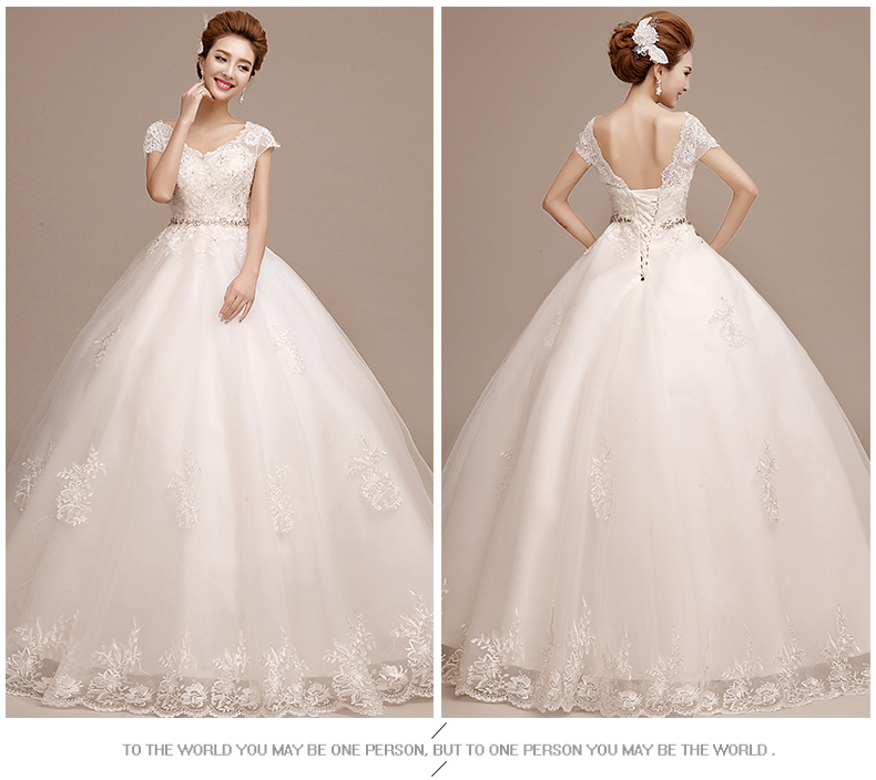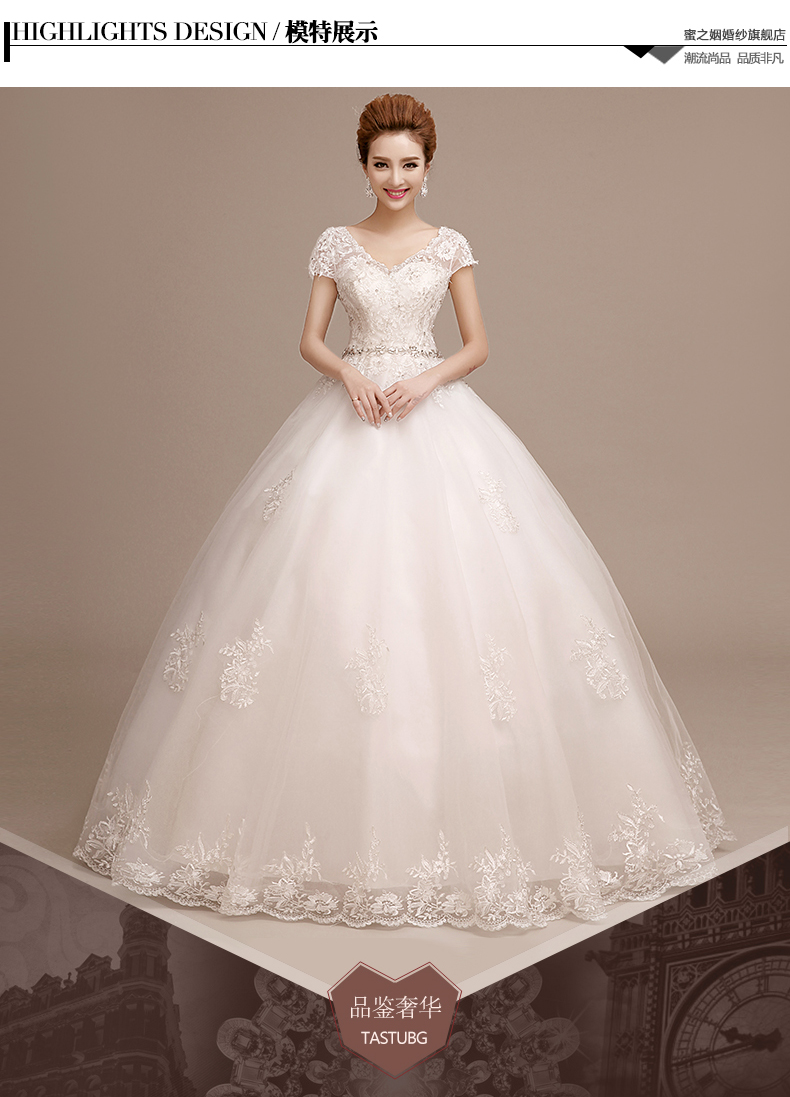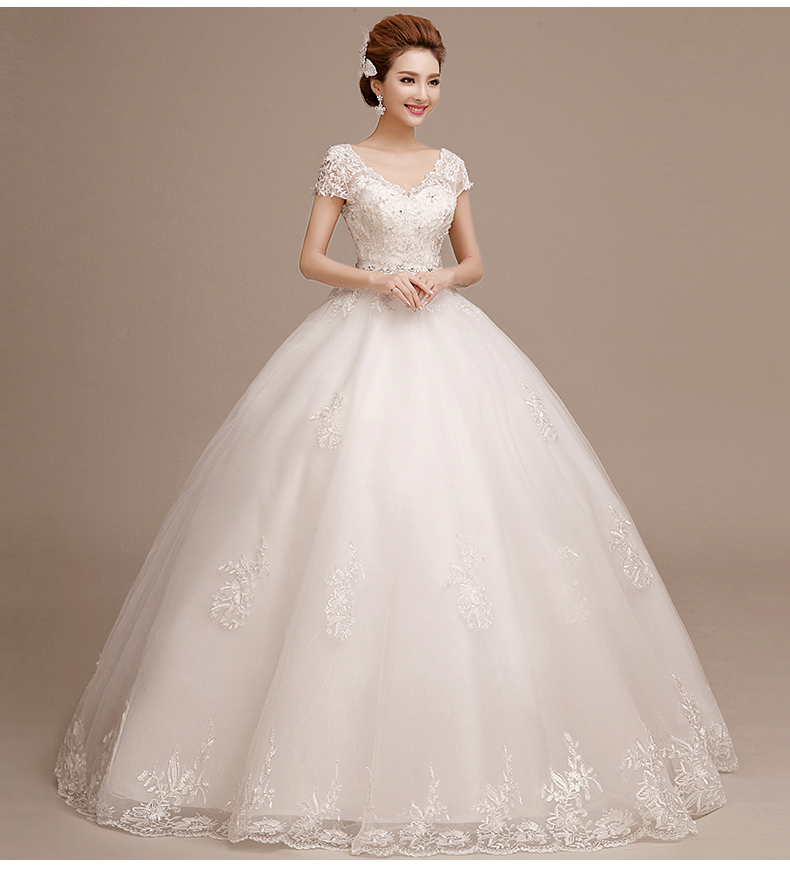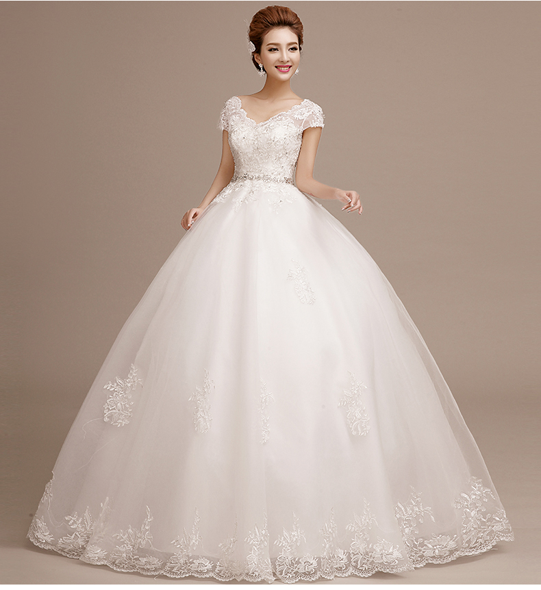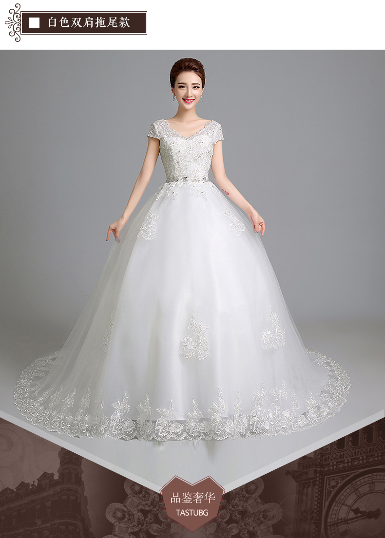 •  婚纱礼服新款韩式新娘结婚大码齐地双肩一字肩孕妇拖尾