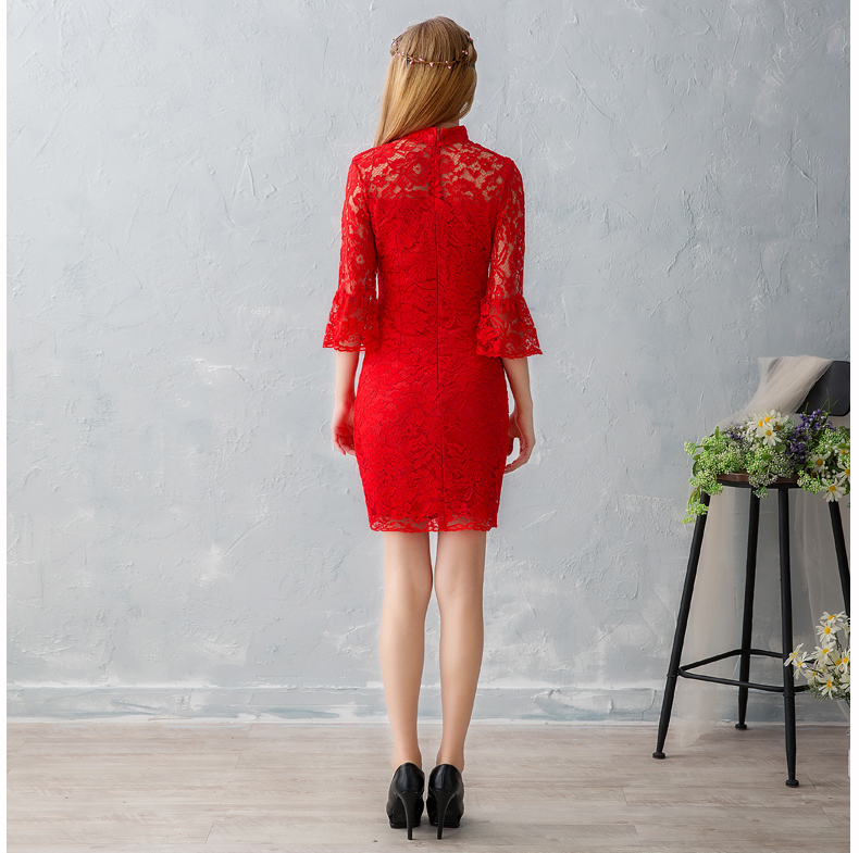 敬酒服新娘结婚短款蕾丝礼服修身显瘦2017新款旗袍红色晚礼服
