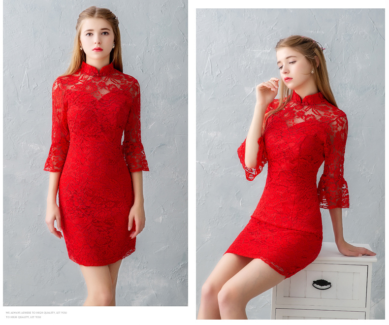 • 敬酒服新娘结婚短款蕾丝礼服修身显瘦2017新款旗袍红色晚礼服