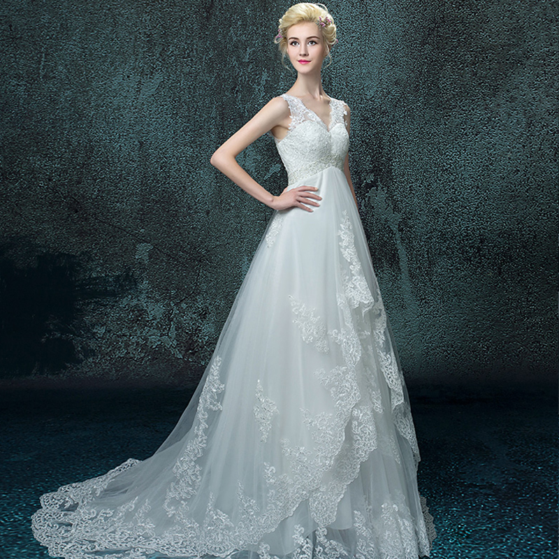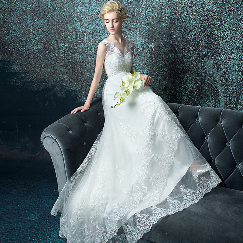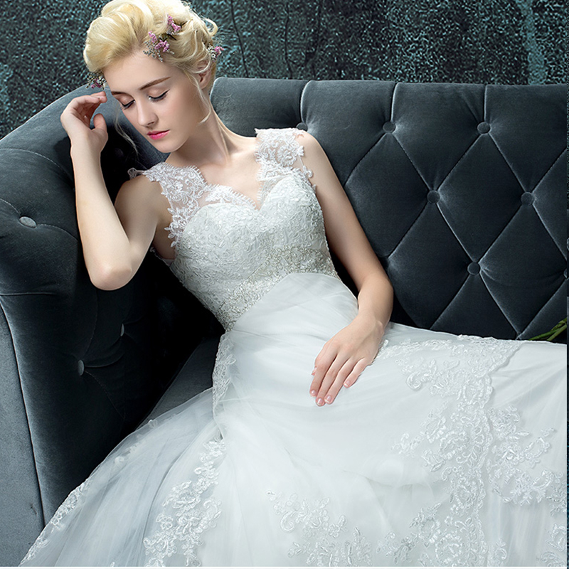 2017婚纱礼服新款新娘韩式高腰一字肩修身拖尾显瘦1575