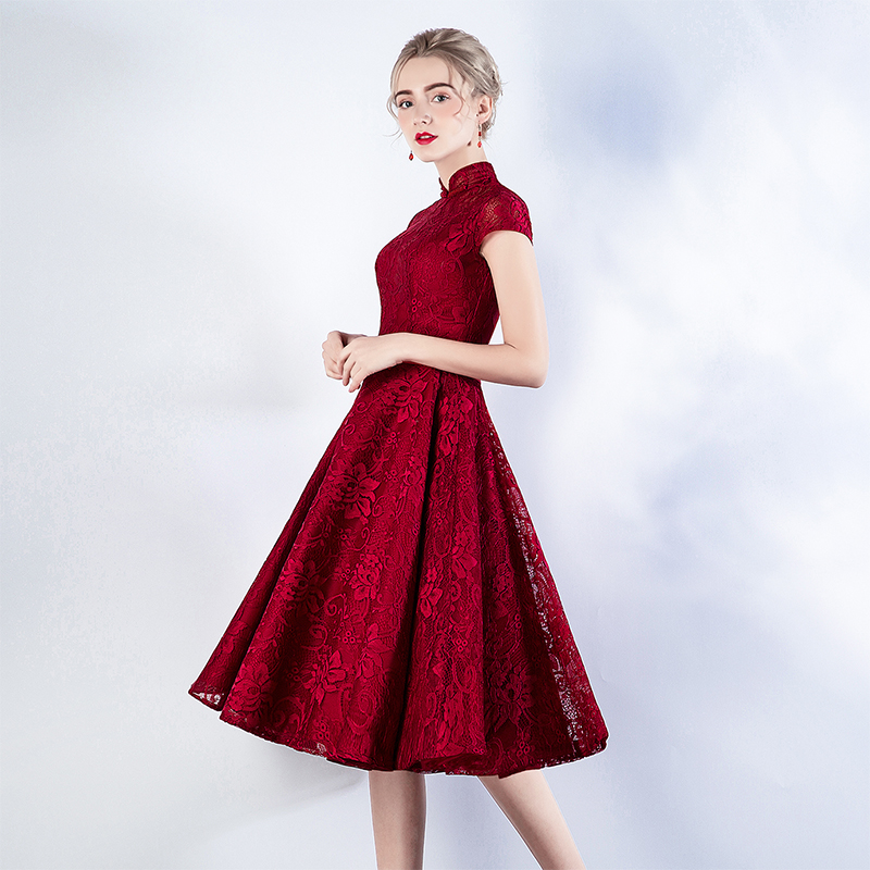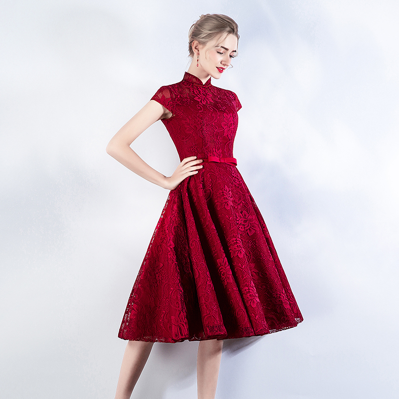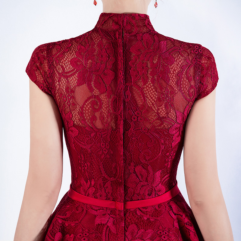 • 新娘敬酒服红色夏季短袖立领晚礼服短裙中长款宴会