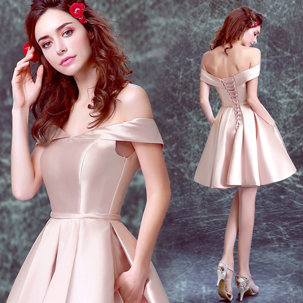 裸粉色新娘伴娘结婚敬酒服短款晚宴年会婚纱小礼服