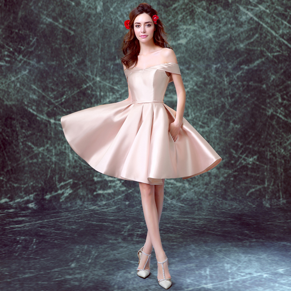 • 裸粉色新娘伴娘结婚敬酒服短款晚宴年会婚纱小礼服