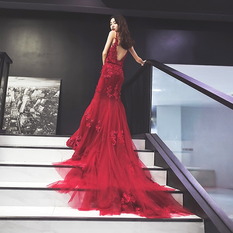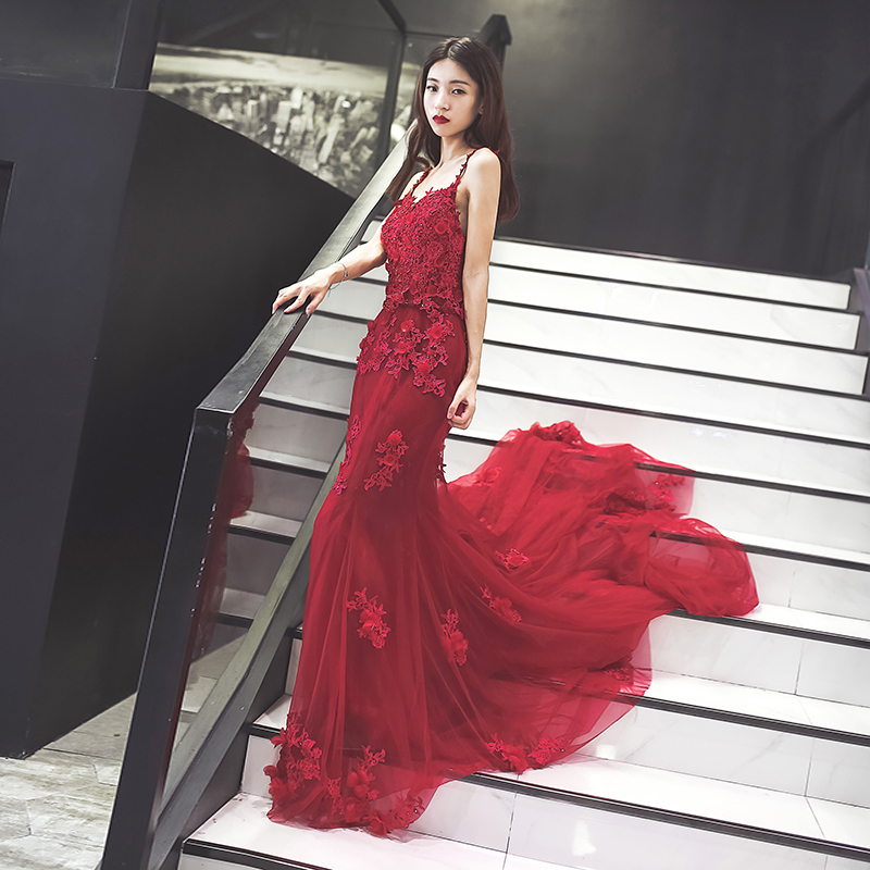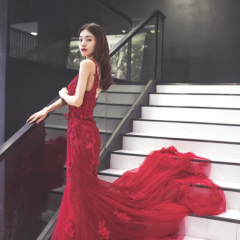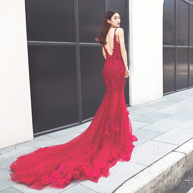 • 新娘敬酒服时尚夏回门性感蕾丝鱼尾婚礼宴会拖尾晚礼