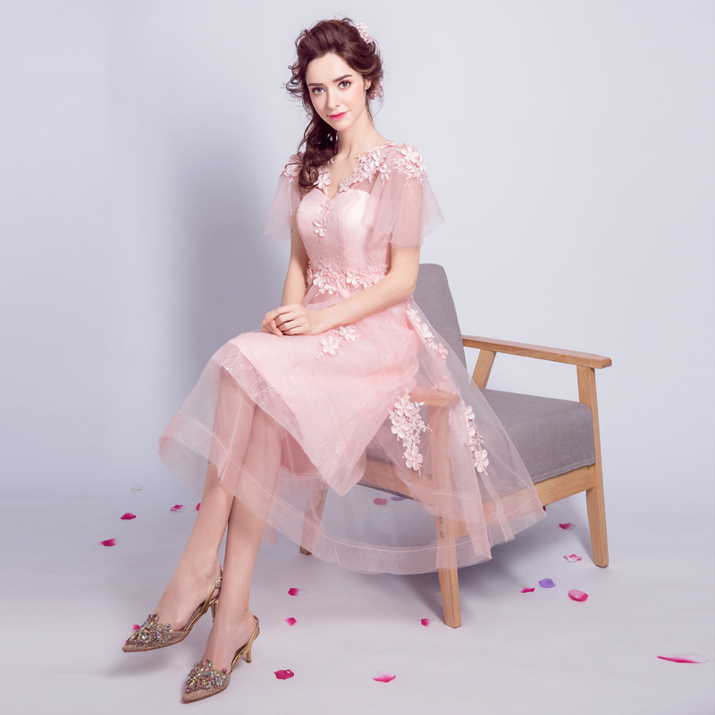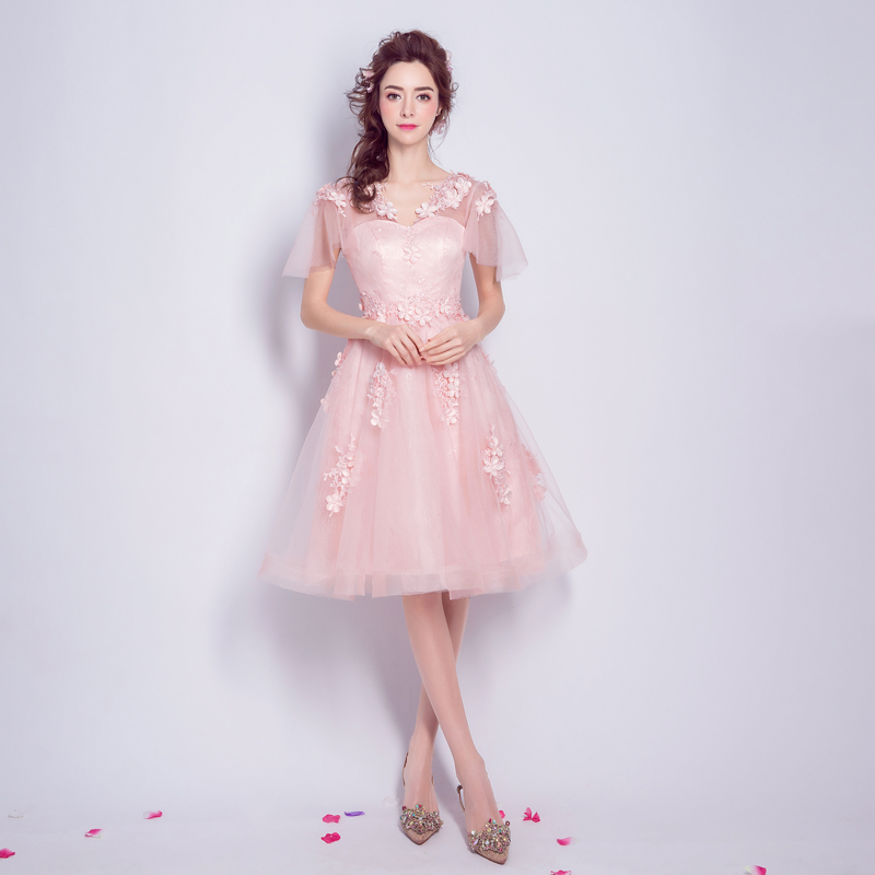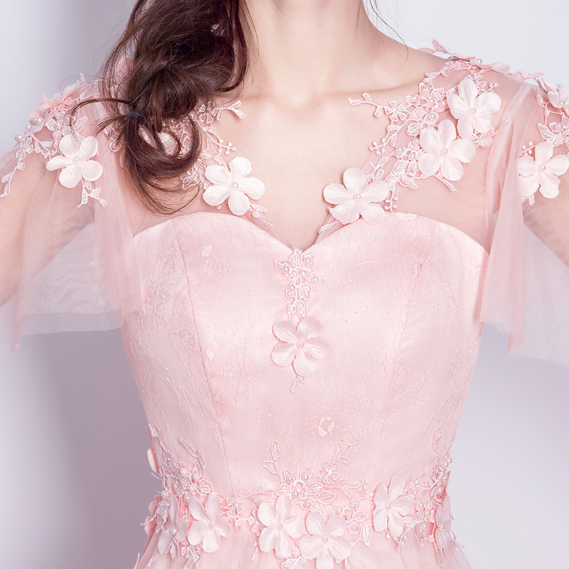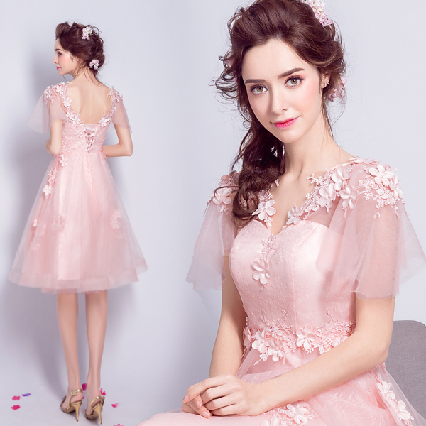 • 粉色花朵新娘结婚敬酒婚纱小礼服短款伴娘服