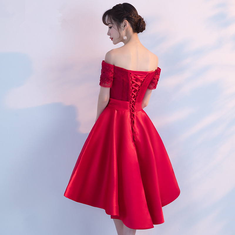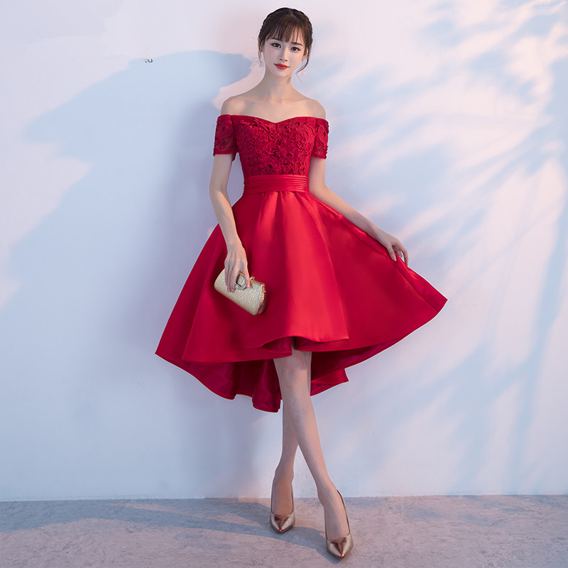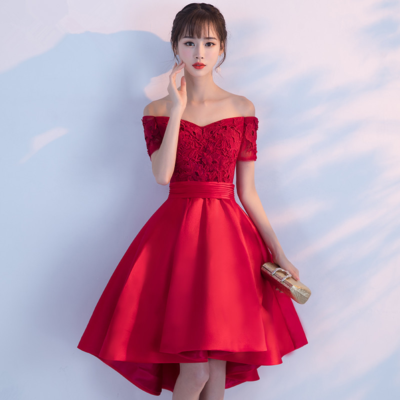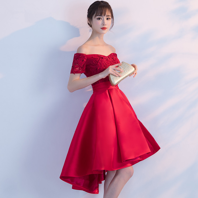 • 一字肩新娘敬酒服新款伴娘服中长款韩式时尚优雅宴会晚礼服