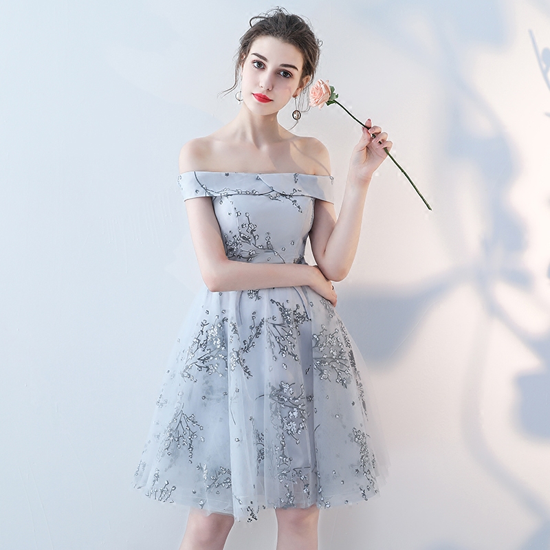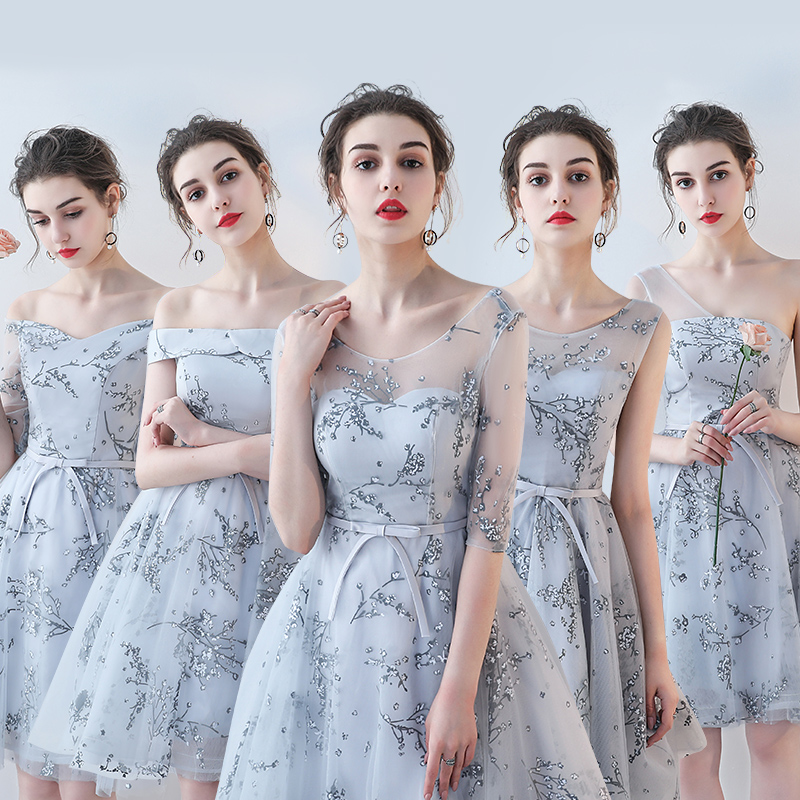伴娘服短款新款夏季伴娘团姐妹裙一字肩晚礼服婚礼派对连