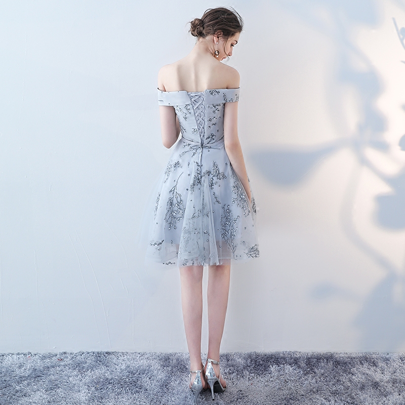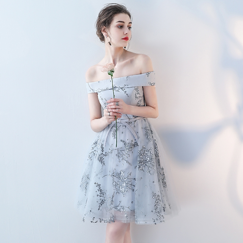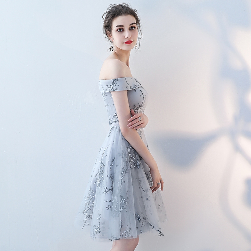 • 伴娘服短款新款夏季伴娘团姐妹裙一字肩晚礼服婚礼派对连