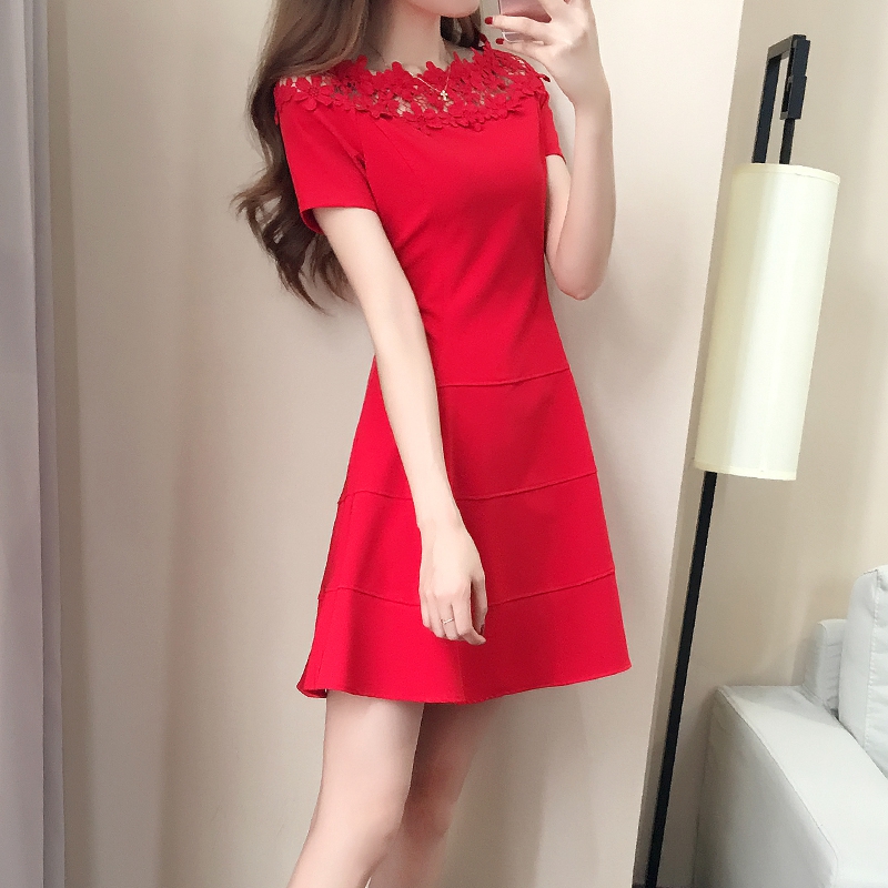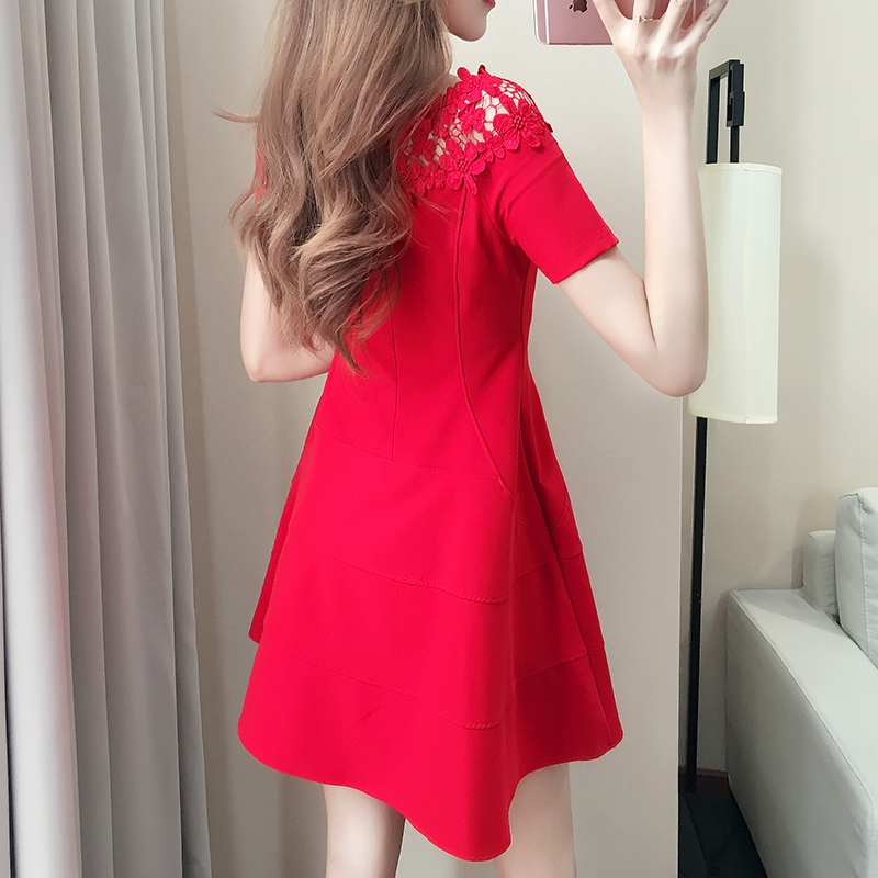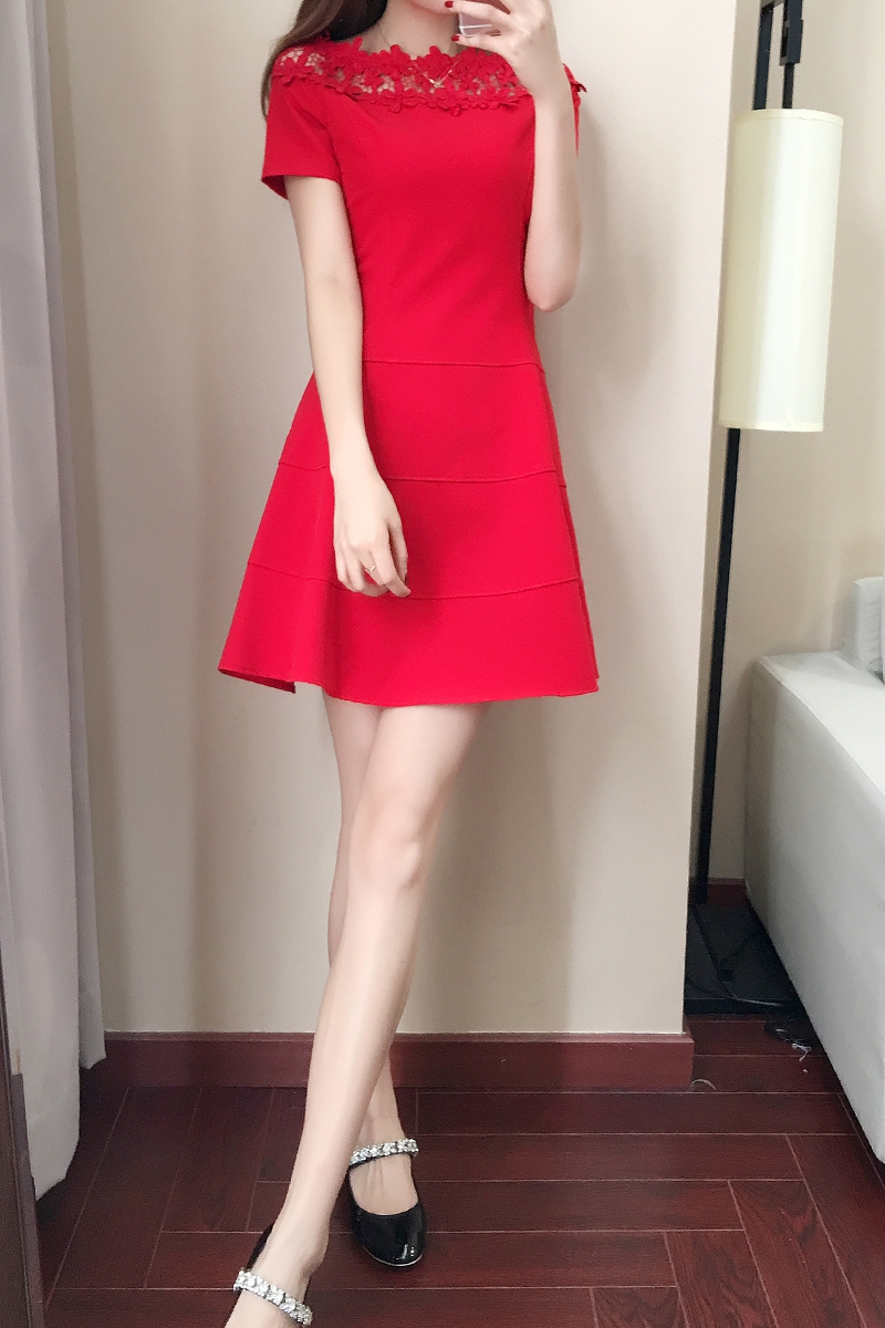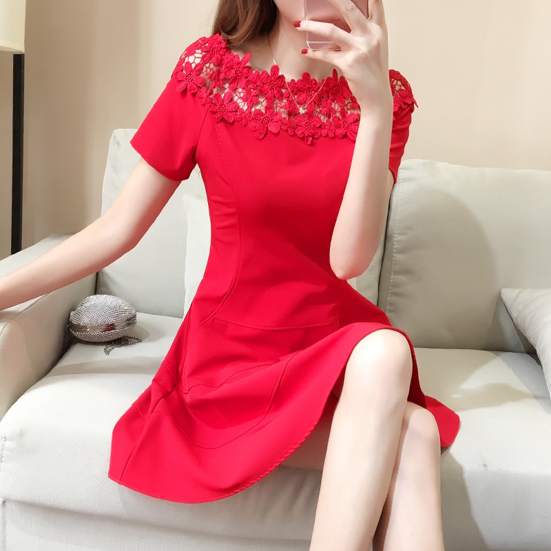 敬酒服新娘红色夏季连衣裙一字肩短袖孕妇短款回门订婚结婚礼服女