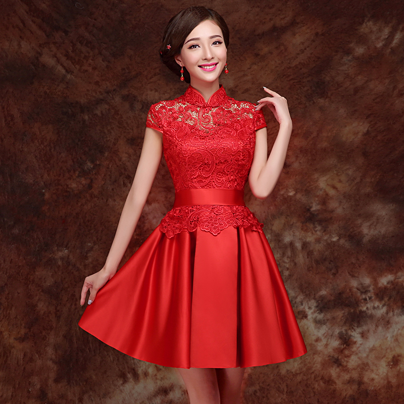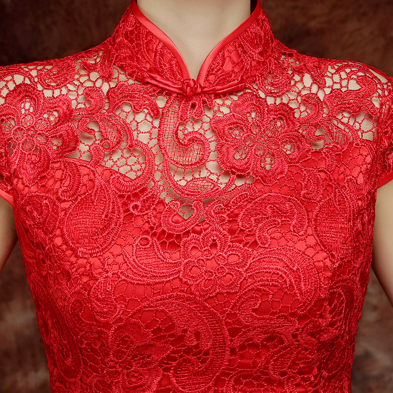 • 高档水溶蕾丝 完美收腰!结婚敬酒回门服旗袍裙复古蕾丝改良中式