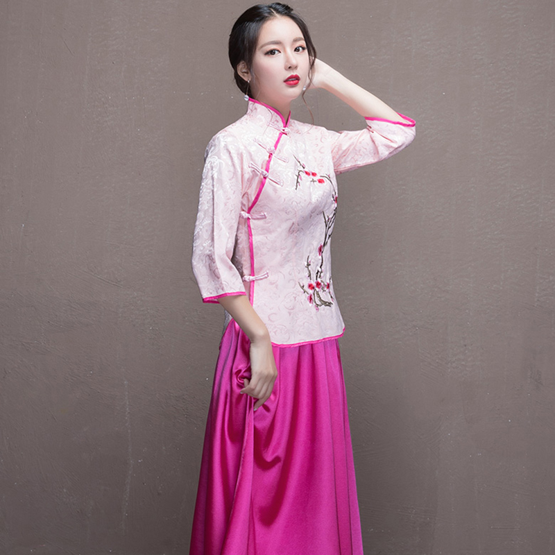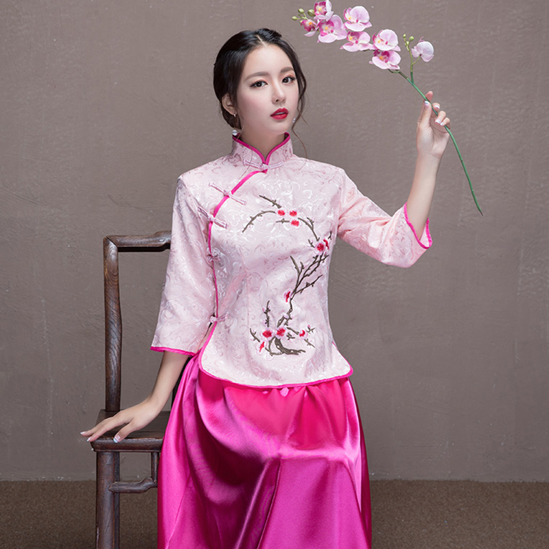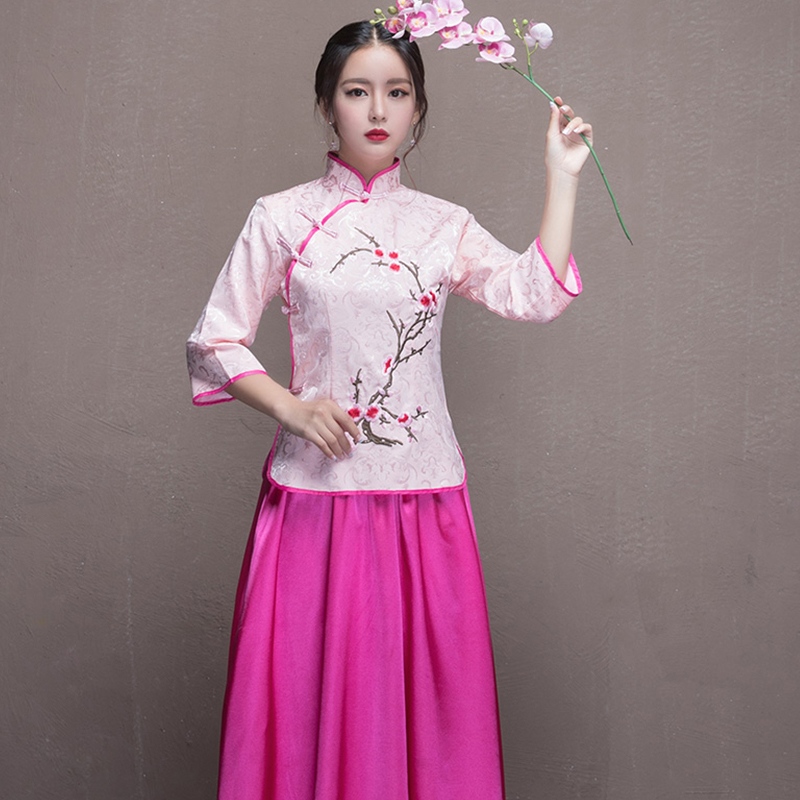 2017新款夏季姐妹团伴娘礼服复古旗袍裙中式伴娘服长款696