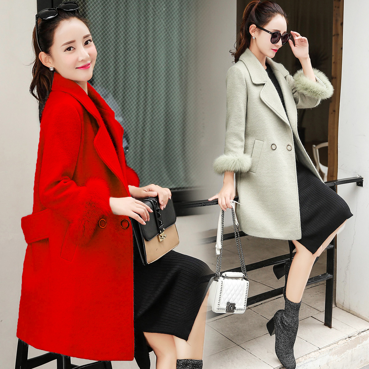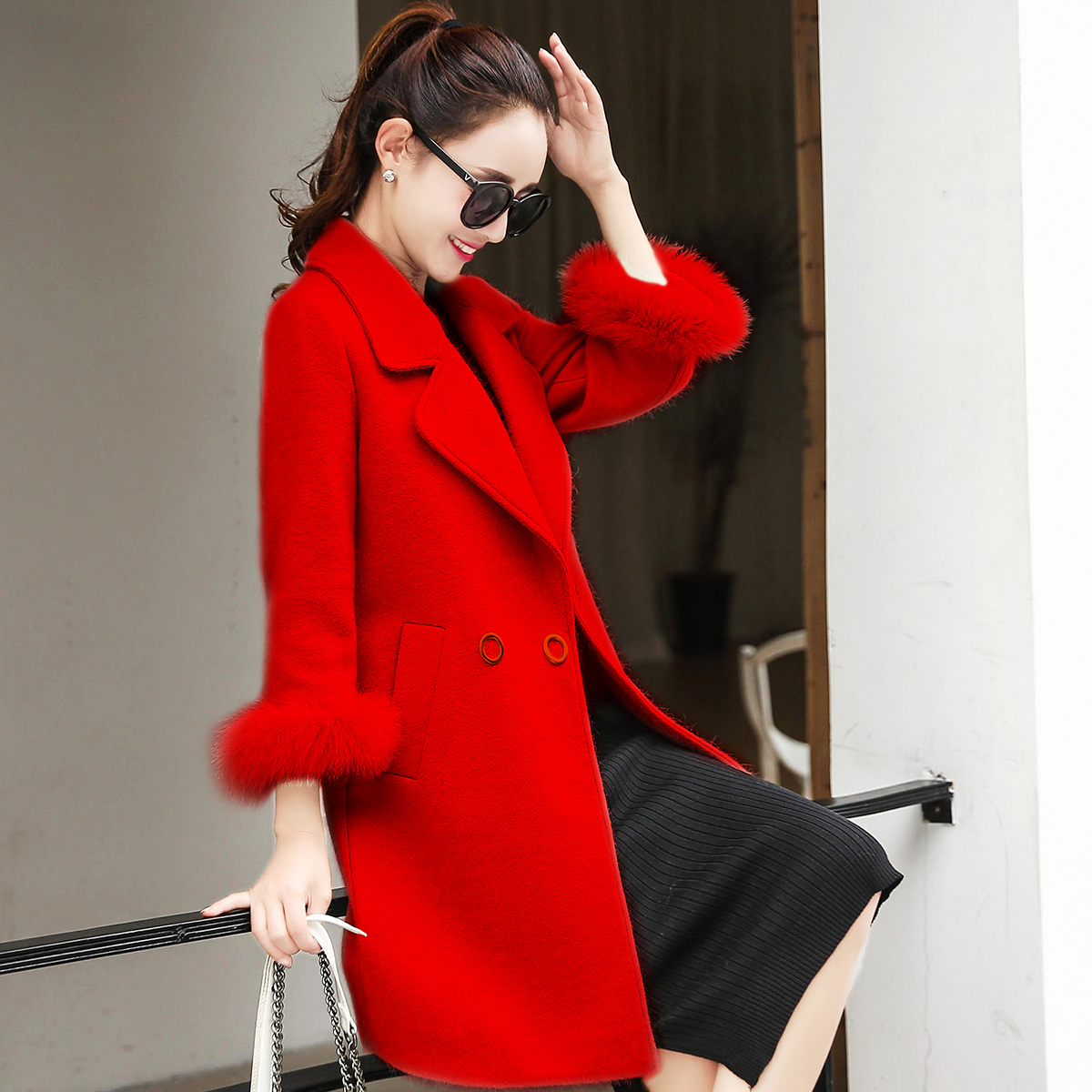 • 新娘敬酒服结婚回门装衣服秋冬季毛呢外套修身中长款羊绒大衣女潮