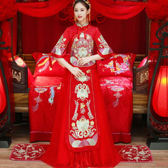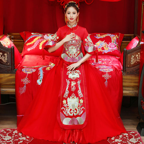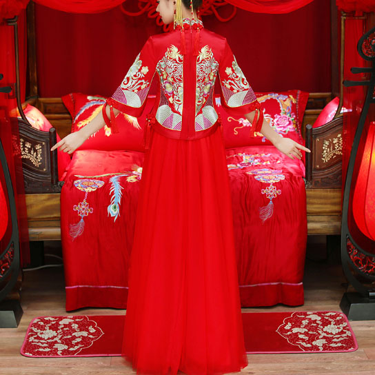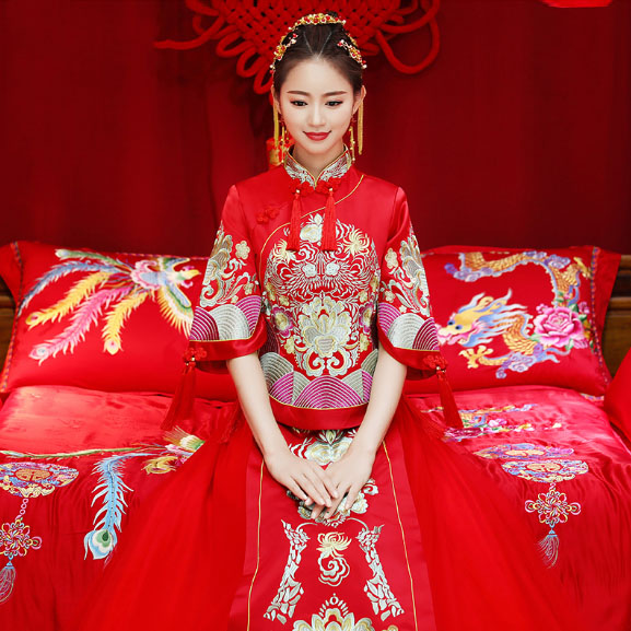 • 同款头饰!2017新款秋冬红色结婚喜服中式敬酒服秀和服龙凤褂