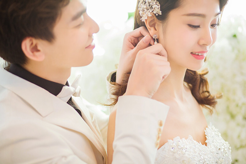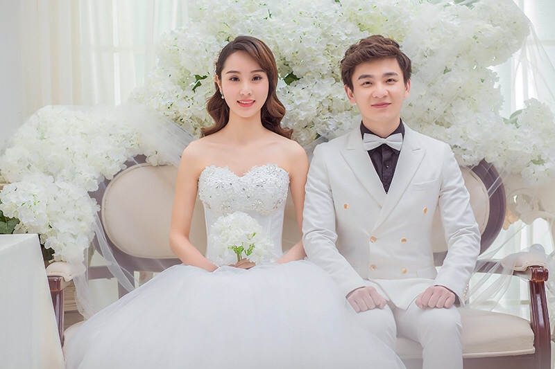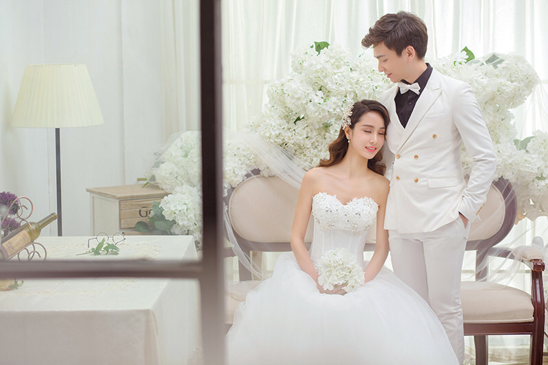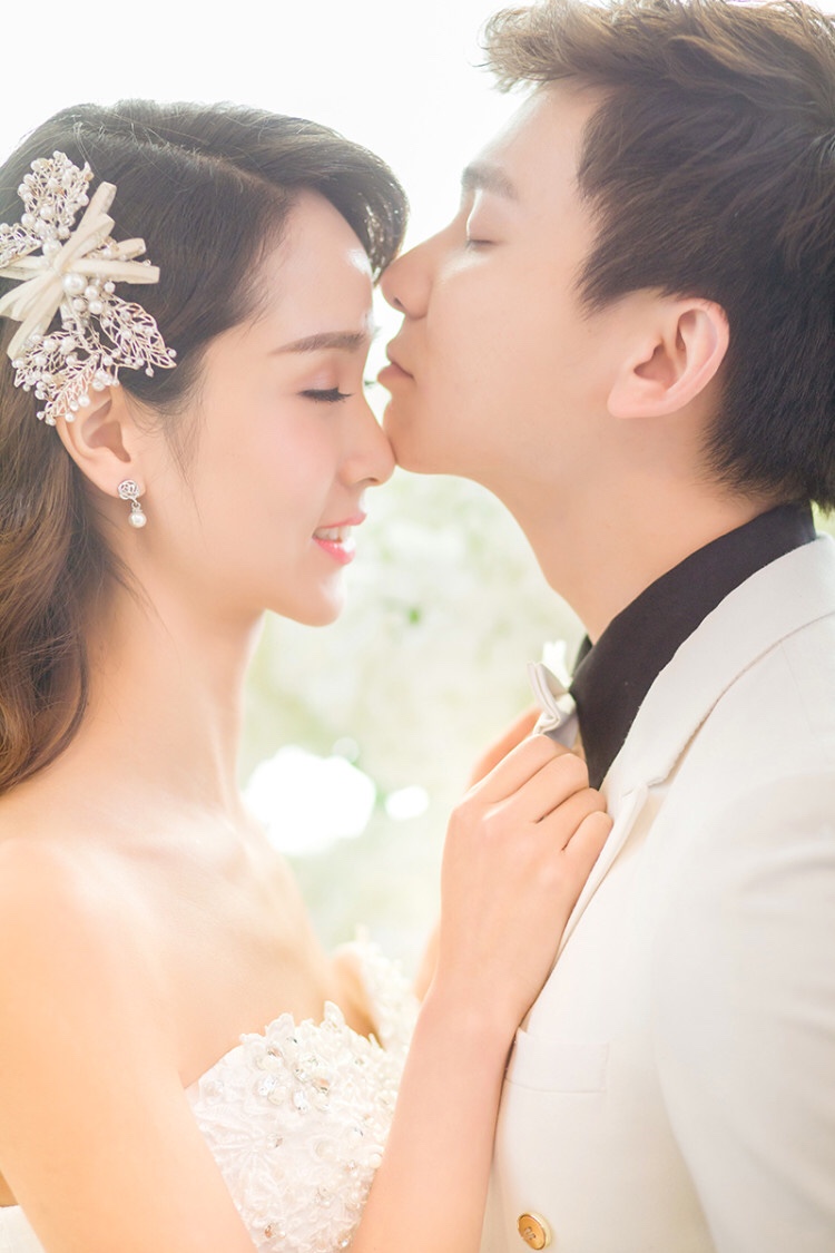 韩式唯美纯色背景婚纱照