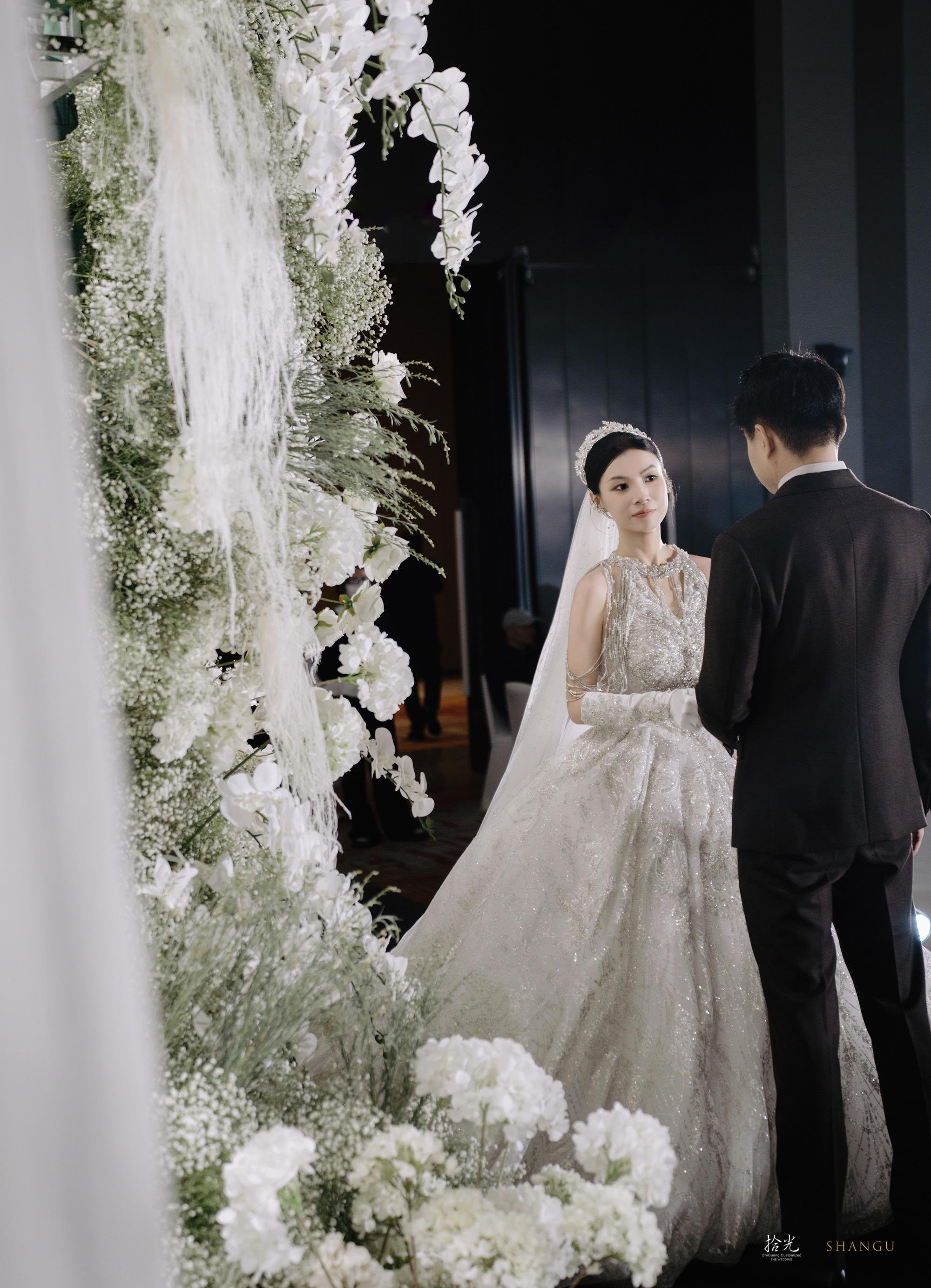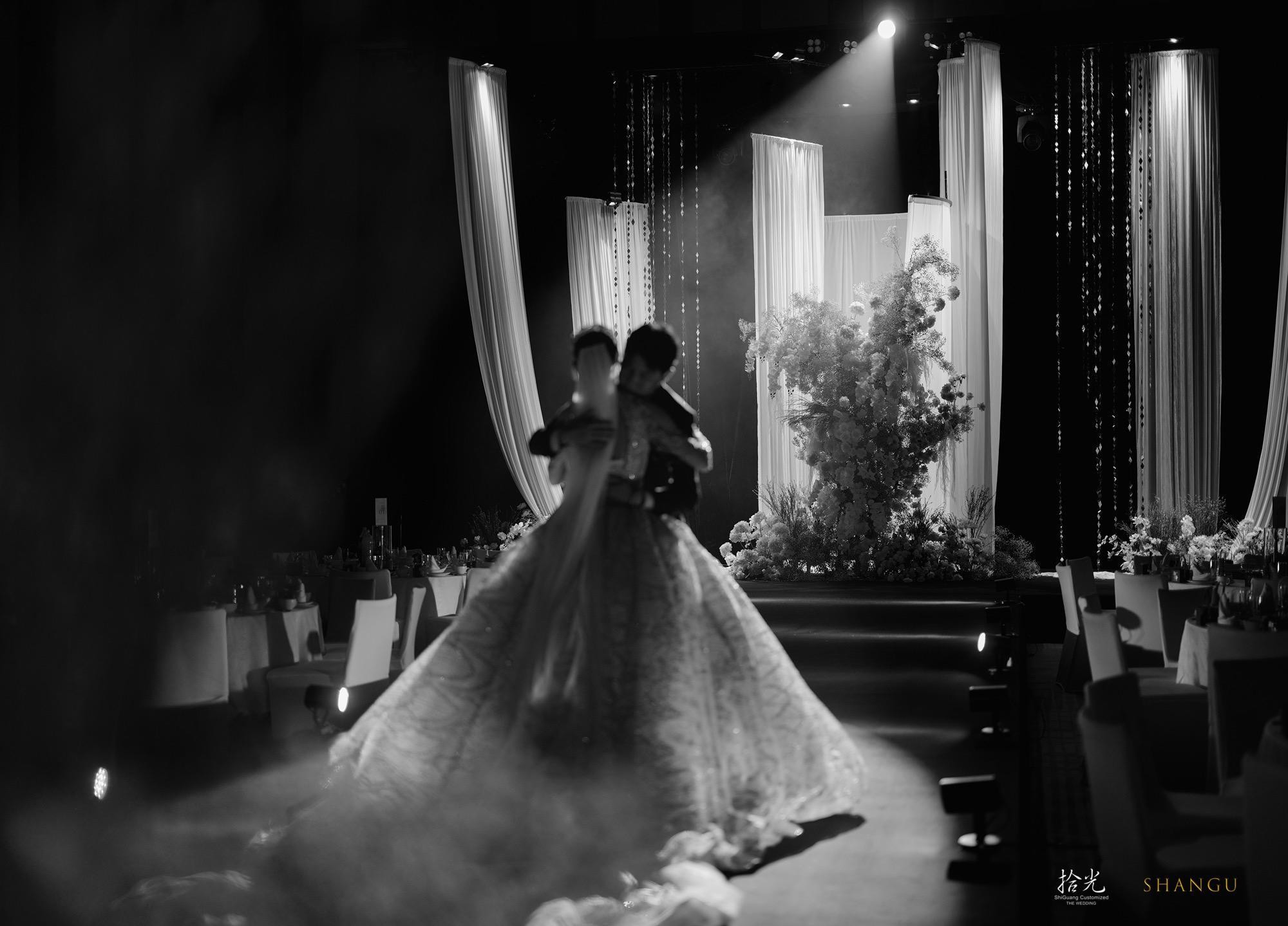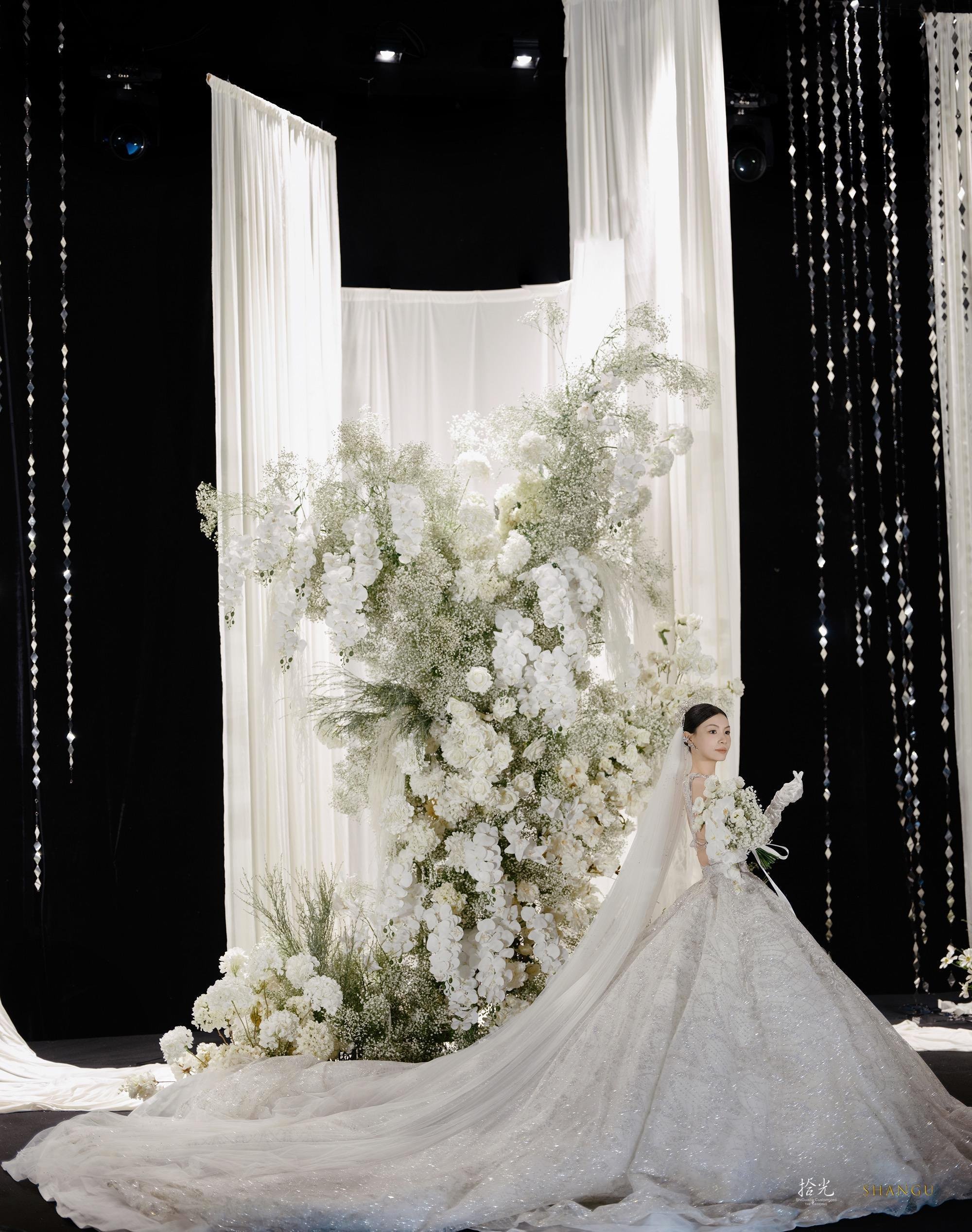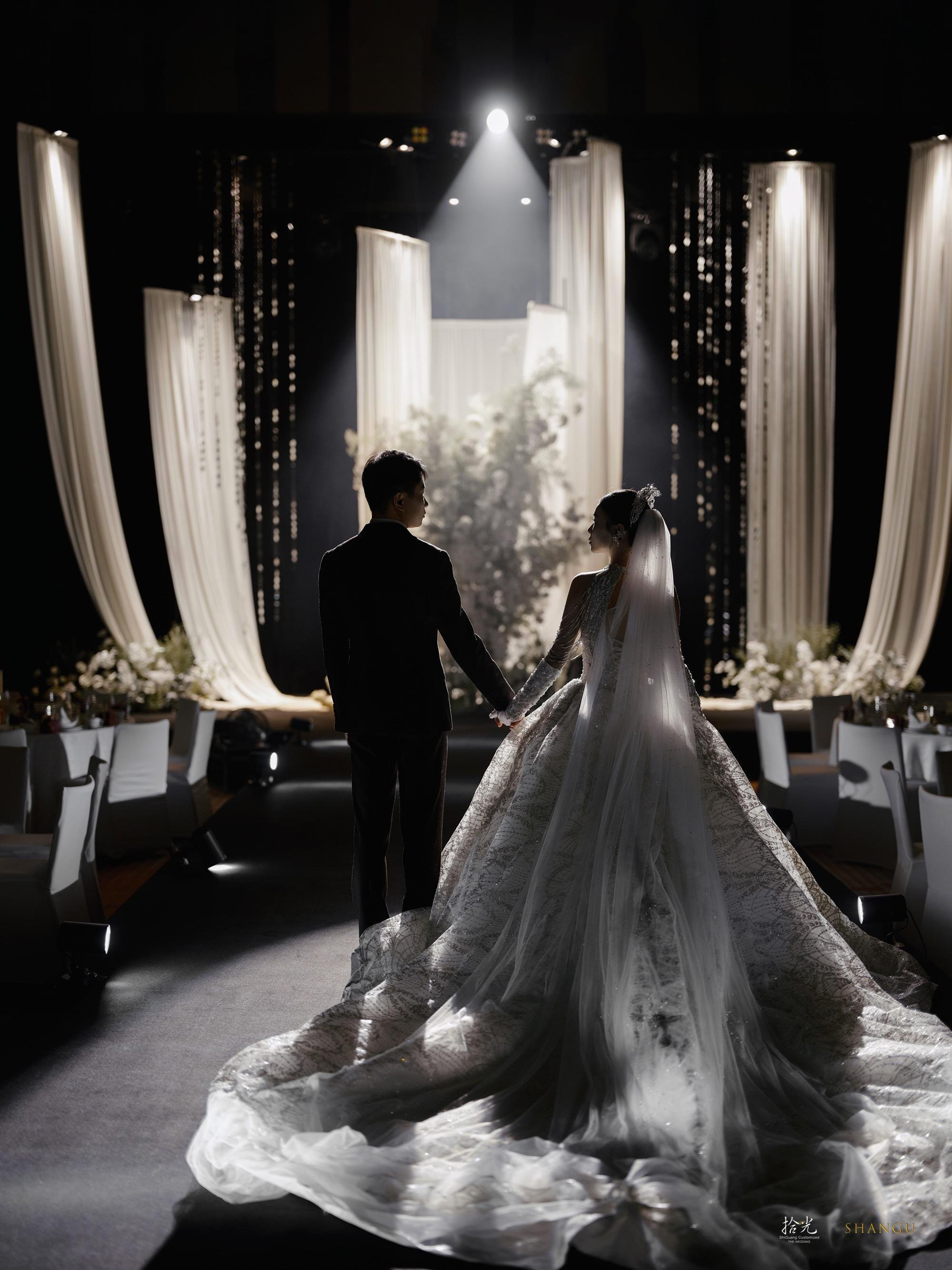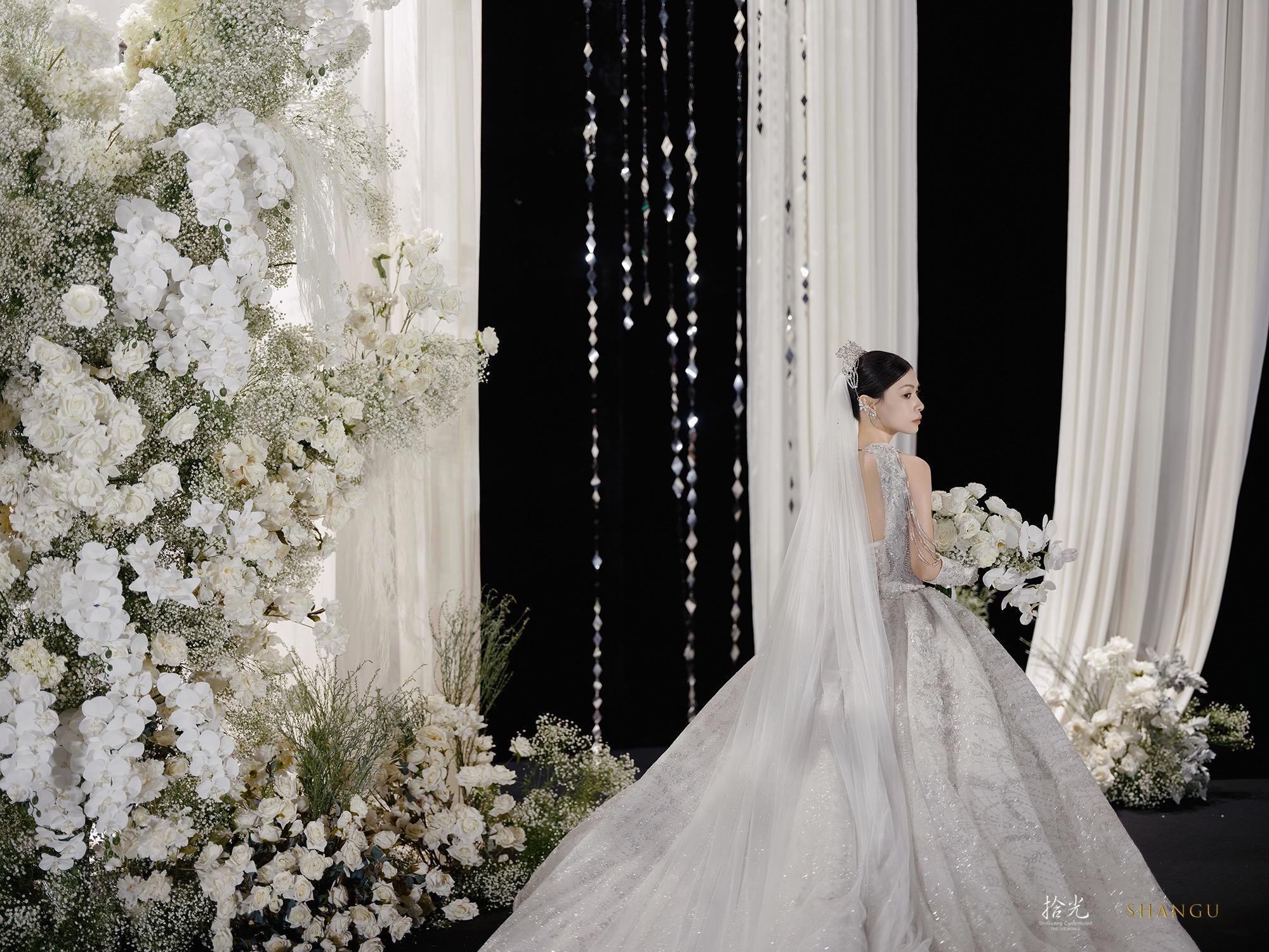 ✨被这场婚礼美到失语!在拾光的婚礼体验,是我能炫耀一辈子的梦✨ 谁能想到黑与白的碰撞能这么高级!从前期沟通开始,策划团队就把我对“极简但不简单”的婚礼想象精准落地—— ▪️全白花艺造景像从云端搬来的花园,满天星和白玫瑰的层次绝了,搭配黑色背景和水晶串帘,拍出来的每一张都是杂志大片既视感(图1图2的主背景我能看一万遍!) ▪️仪式时的灯光设计太绝了!黑白色调的氛围下,追光打在我们身上那一刻,仿佛全世界只剩彼此(图3的黑白纪实感直接封神,拾光的摄影团队太会抓情绪了) ▪️我的主纱是带细闪的拖尾款,在灯光下像把银河穿在身上,背后的露背设计又很有小心机,婚礼结束后被问了无数次链接! 从场地布置到流程细节,拾光团队把“精致感”和“氛围感”平衡得恰到好处,完全不用我操心任何事。备婚的姐妹选他们家,真的能收获一场不留遗憾的婚礼!