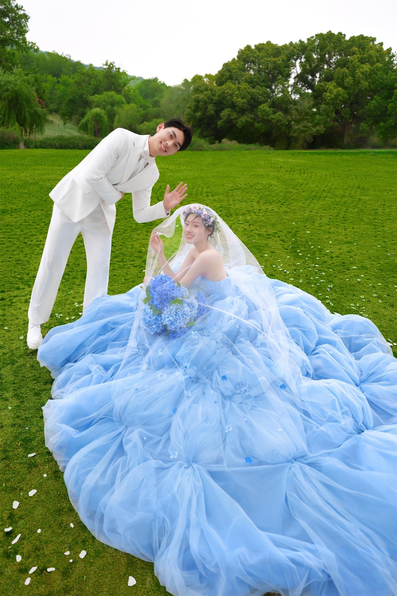 谁懂啊‼️在草坪湖边拍出了韩剧婚礼同款婚纱照💘
