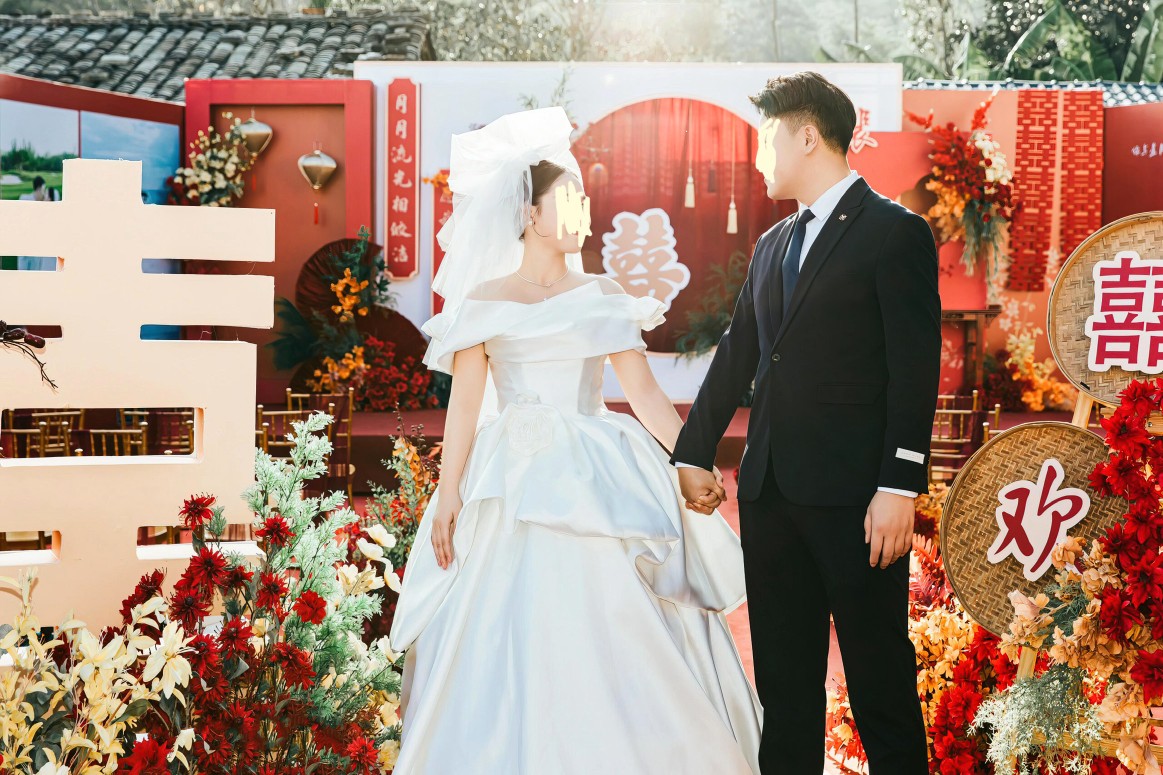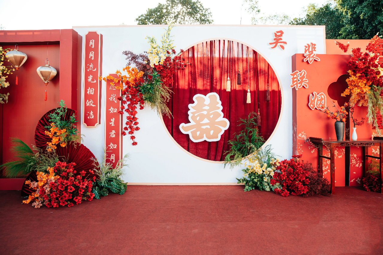 红色新中式户外婚礼