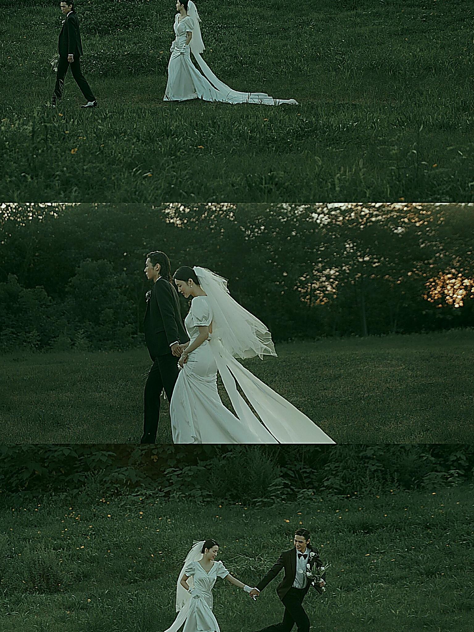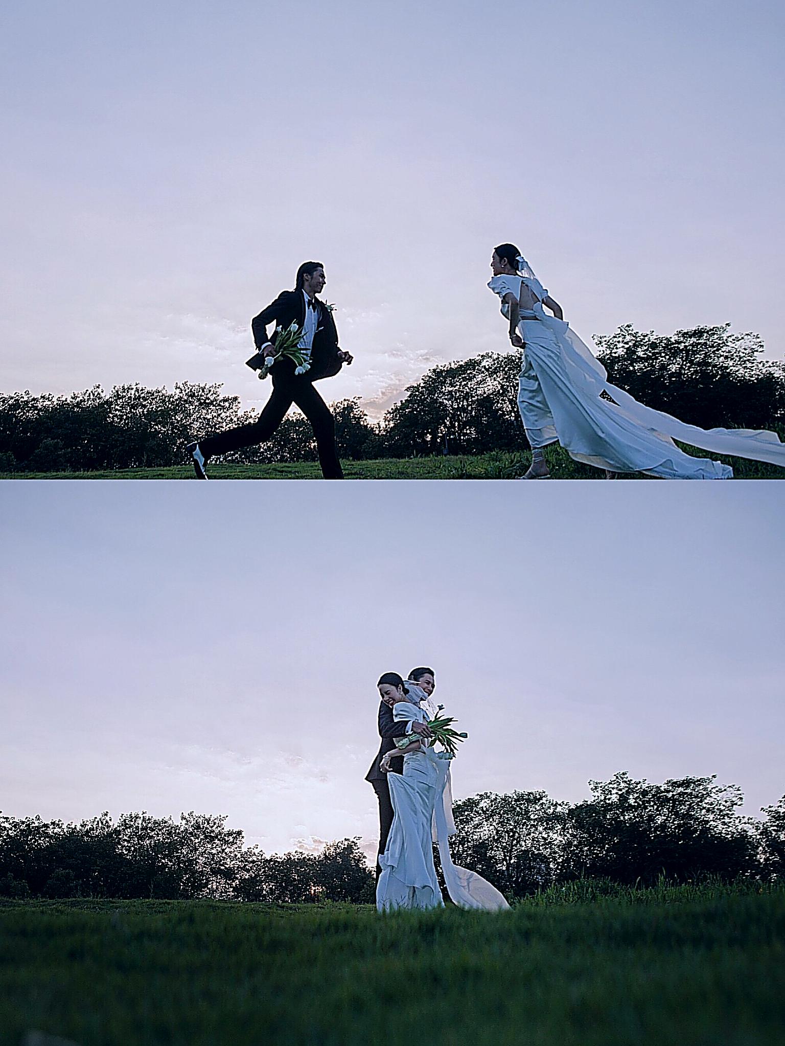 一种很新颖很清透的草坪婚纱照的拍摄方式