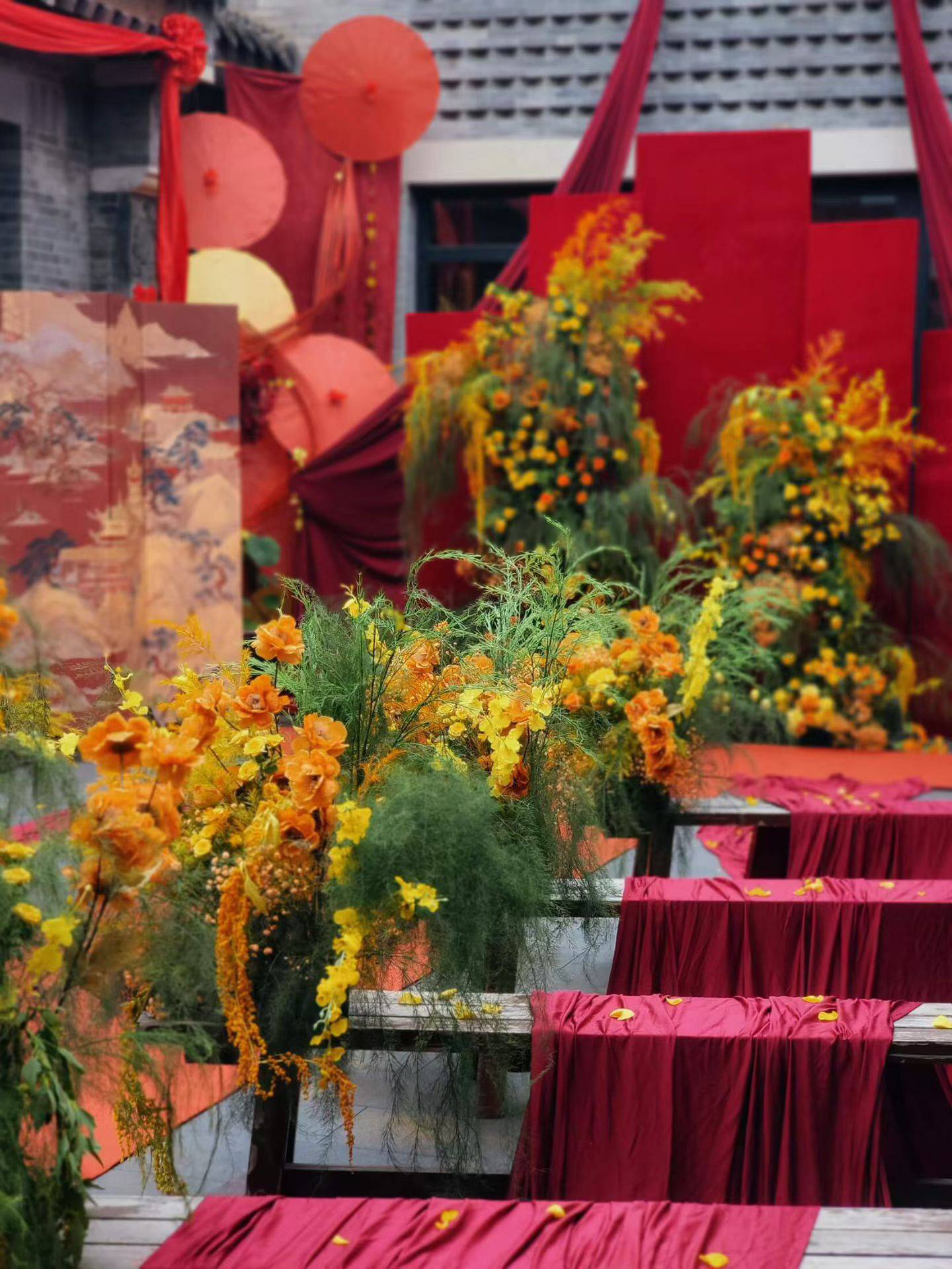 『初见婚礼定制』中式庭院红色自然风布幔婚礼