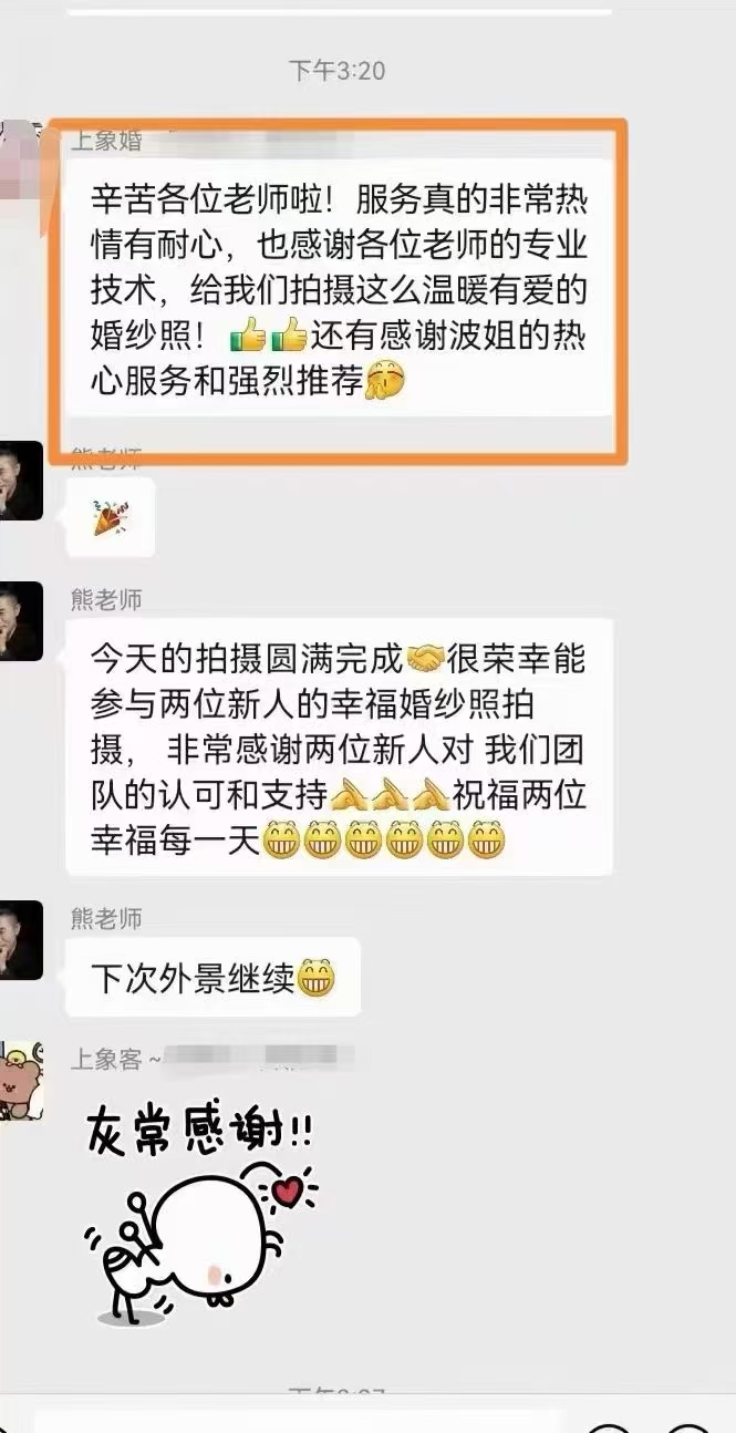 新人拍摄完后对服务很满意,感谢新人的信任及认可!祝百年好合