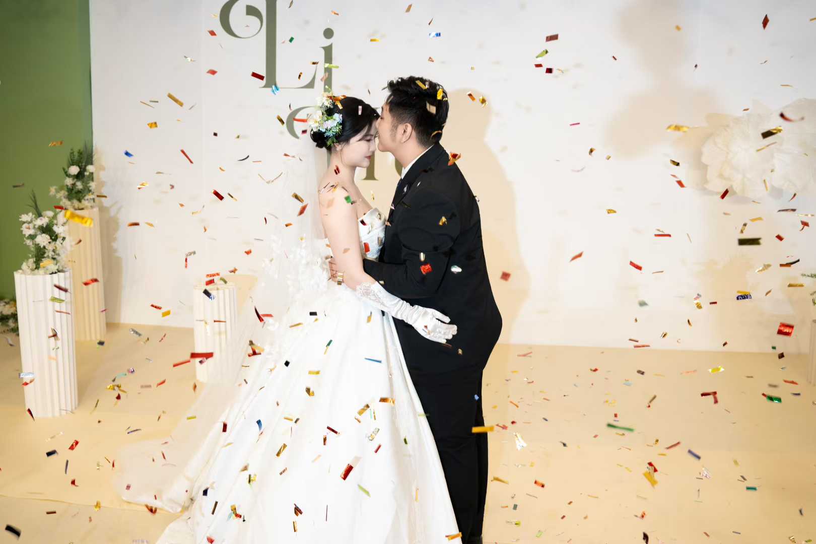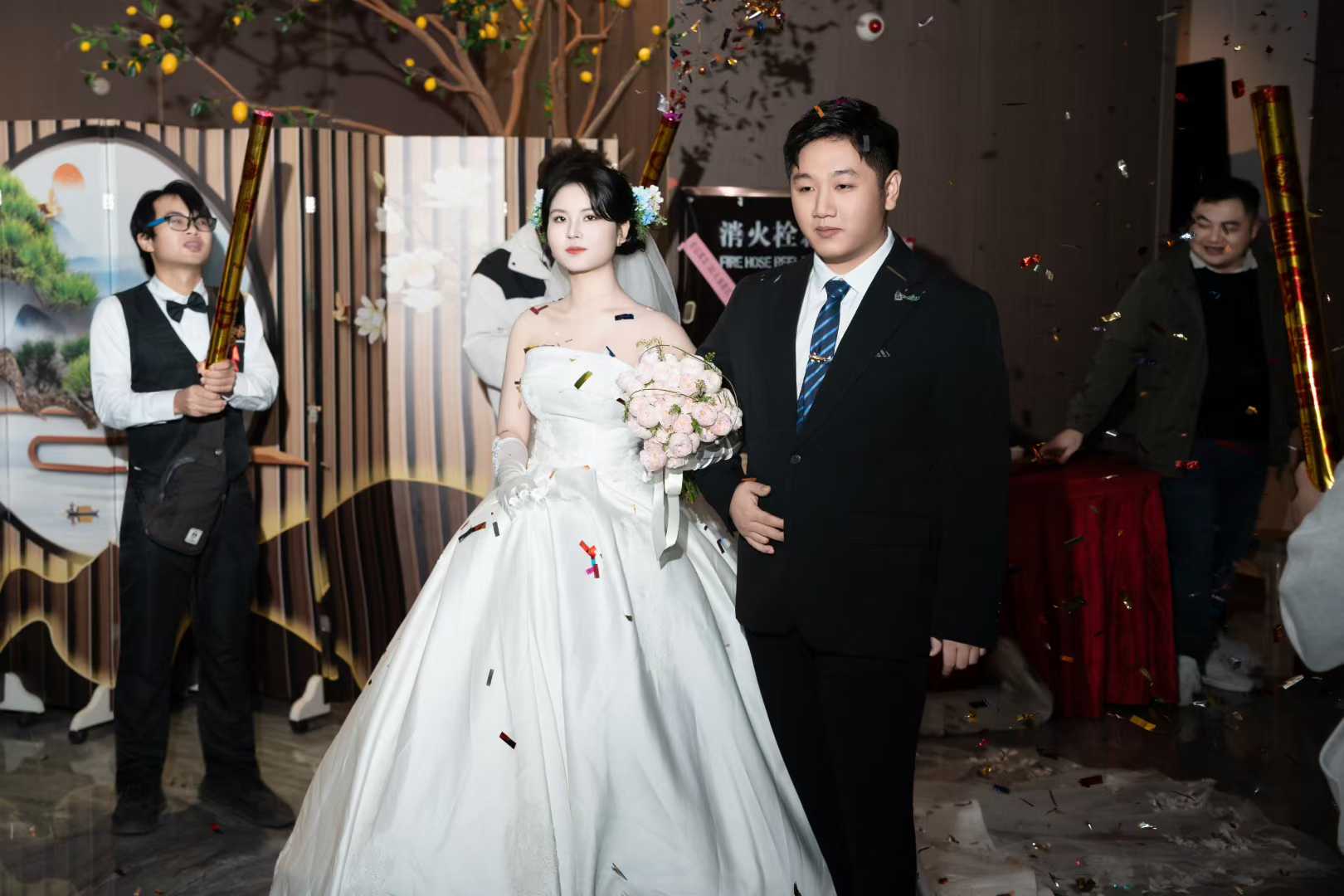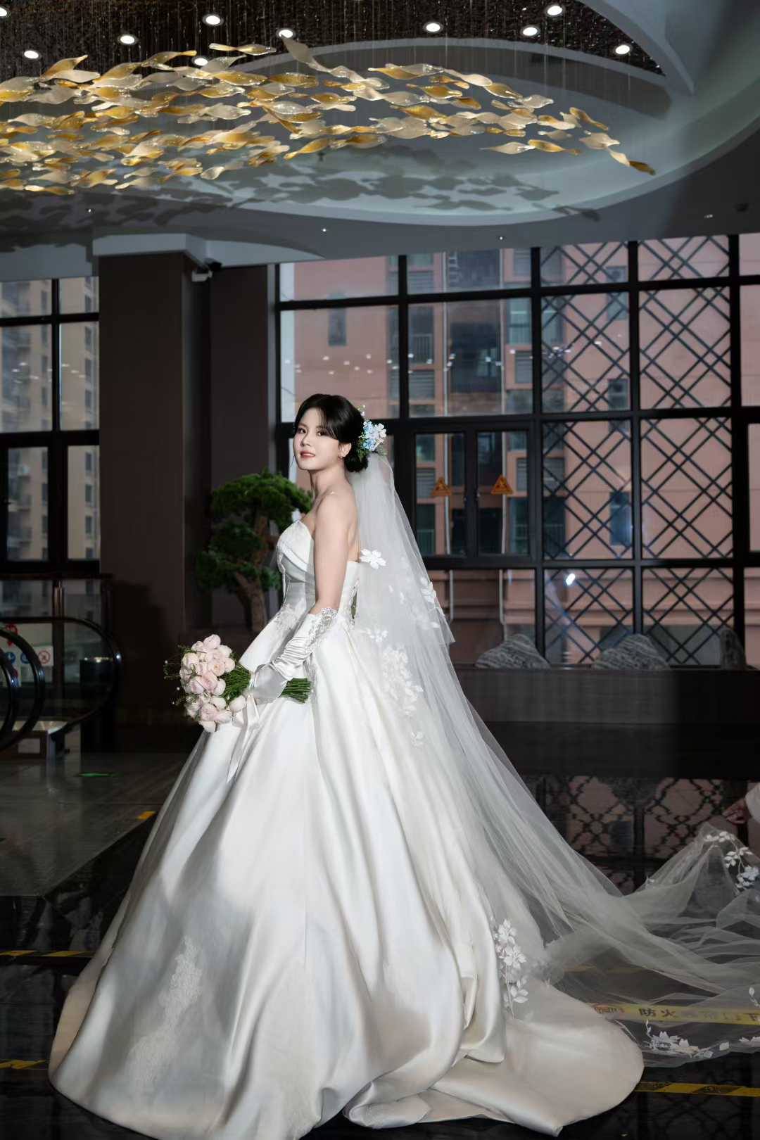 酒店办婚礼就要有仪式感,张美女到店试纱一眼就相中了我们高定的大拖尾婚纱,试穿后立马定下来了,婚礼结束出来的效果也是非常漂亮、超级赞哦~