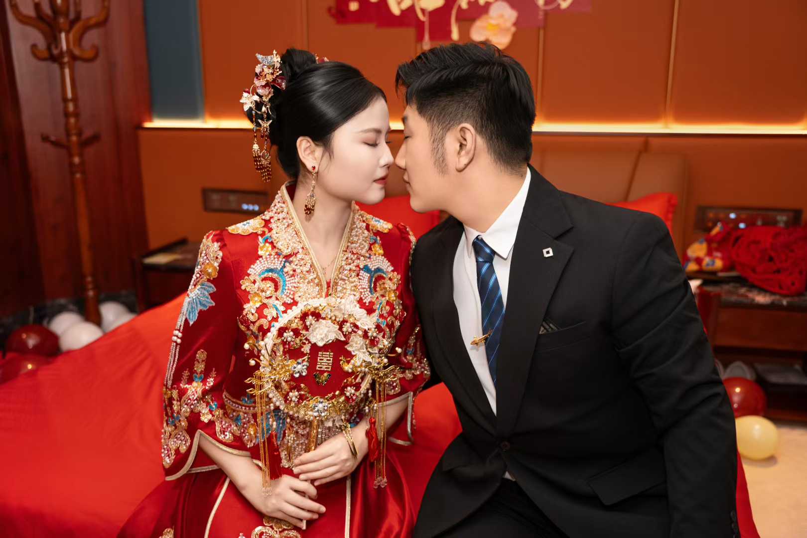 红色抹胸敬酒服